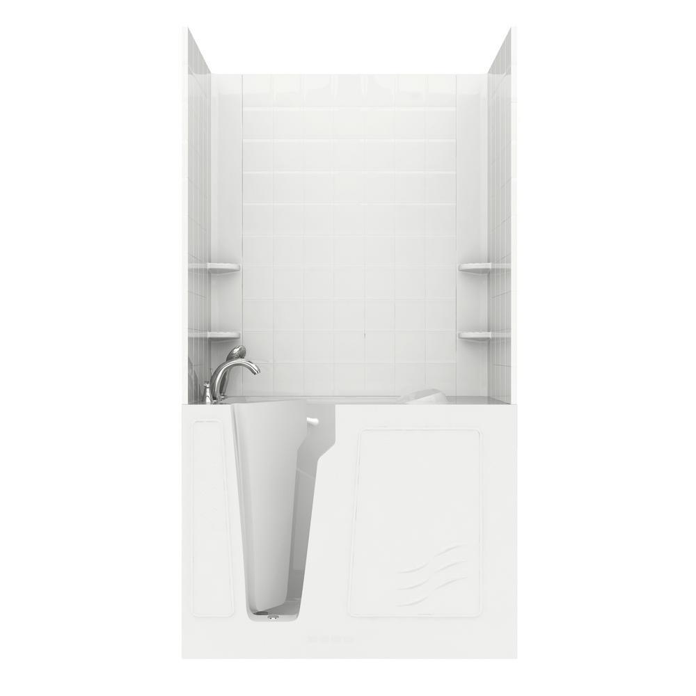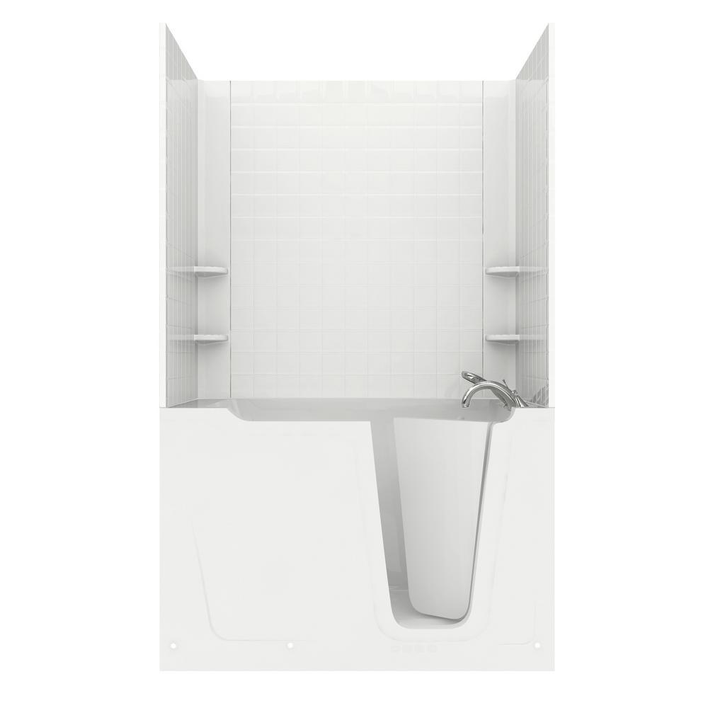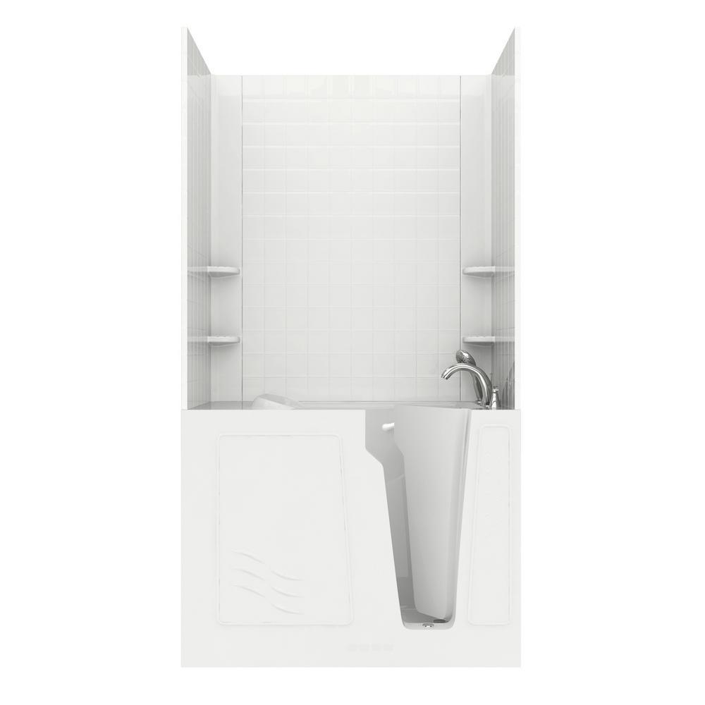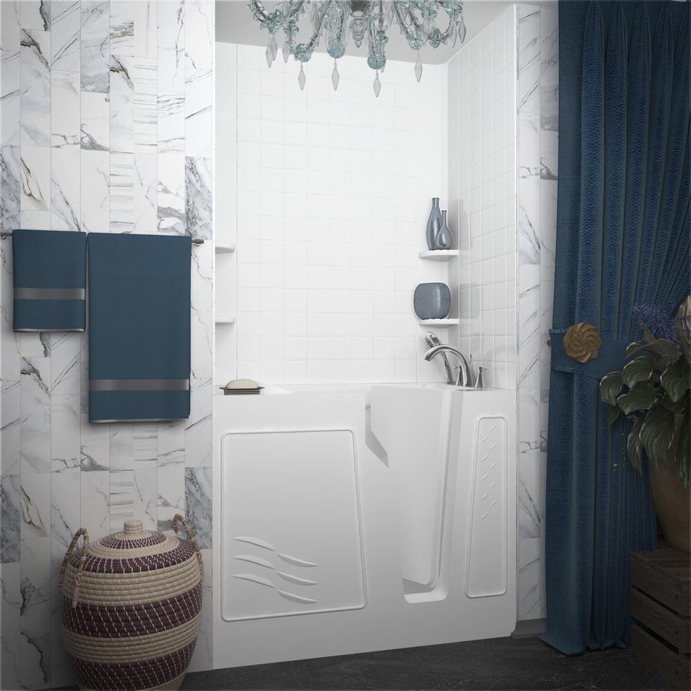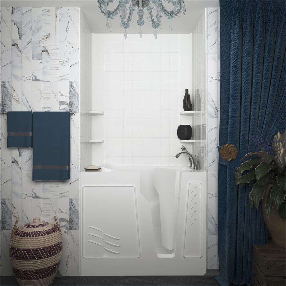 Rampart 3.9 ft. Walk-in Whirlpool and Air Bathtub with 4 in. Tile Easy Up Adhesive Wall Surround in White