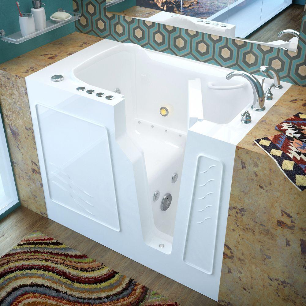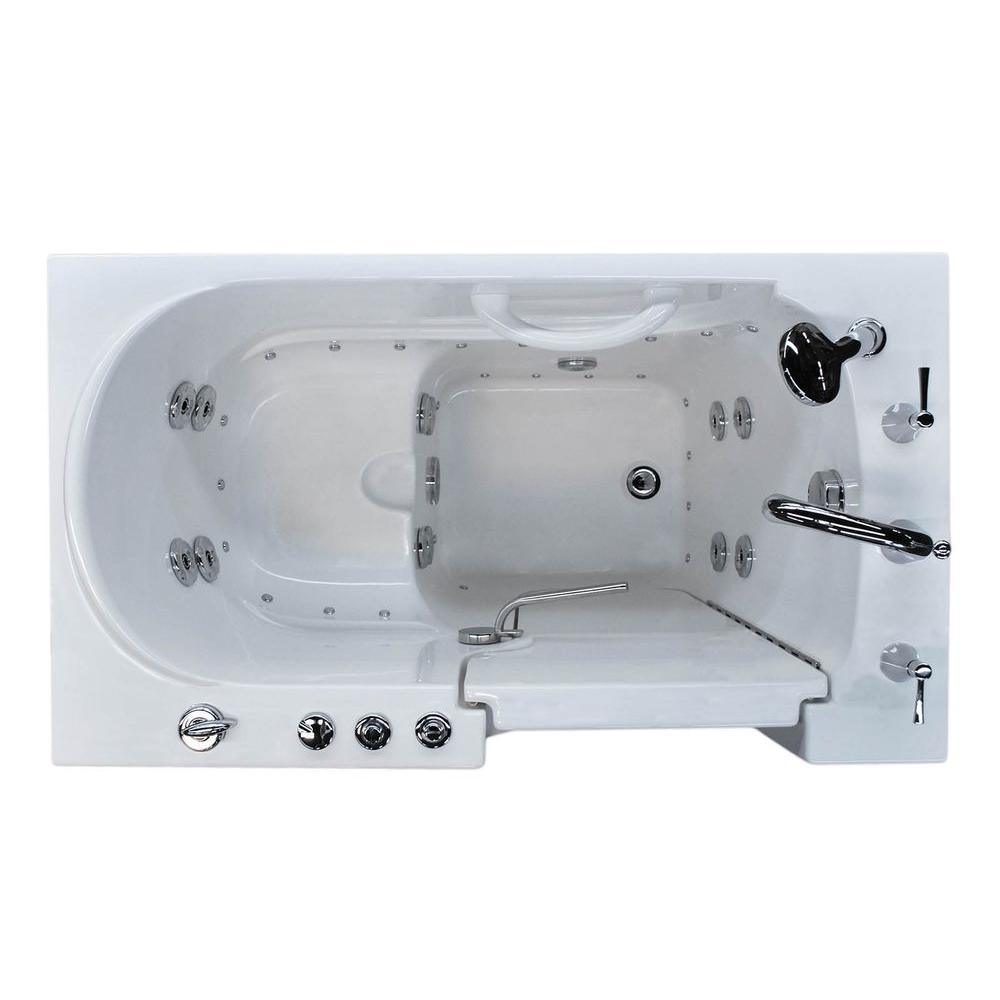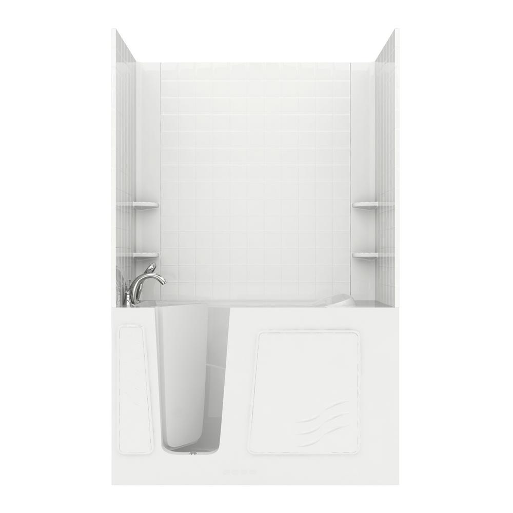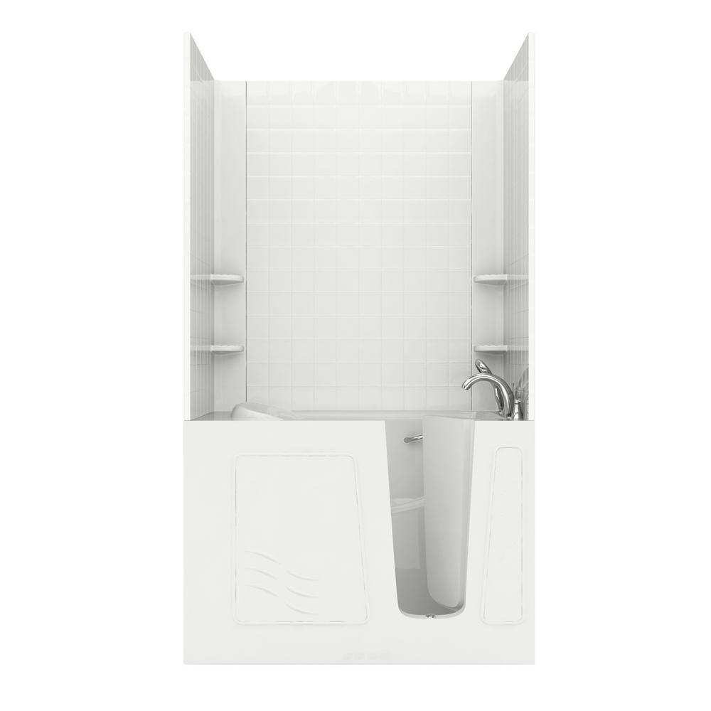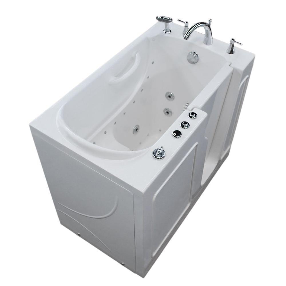 Rampart 3.9 ft. Walk-in Whirlpool and Air Bathtub with 4 in. Tile Easy Up Adhesive Wall Surround in White