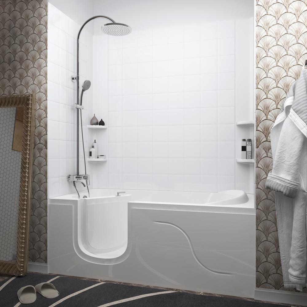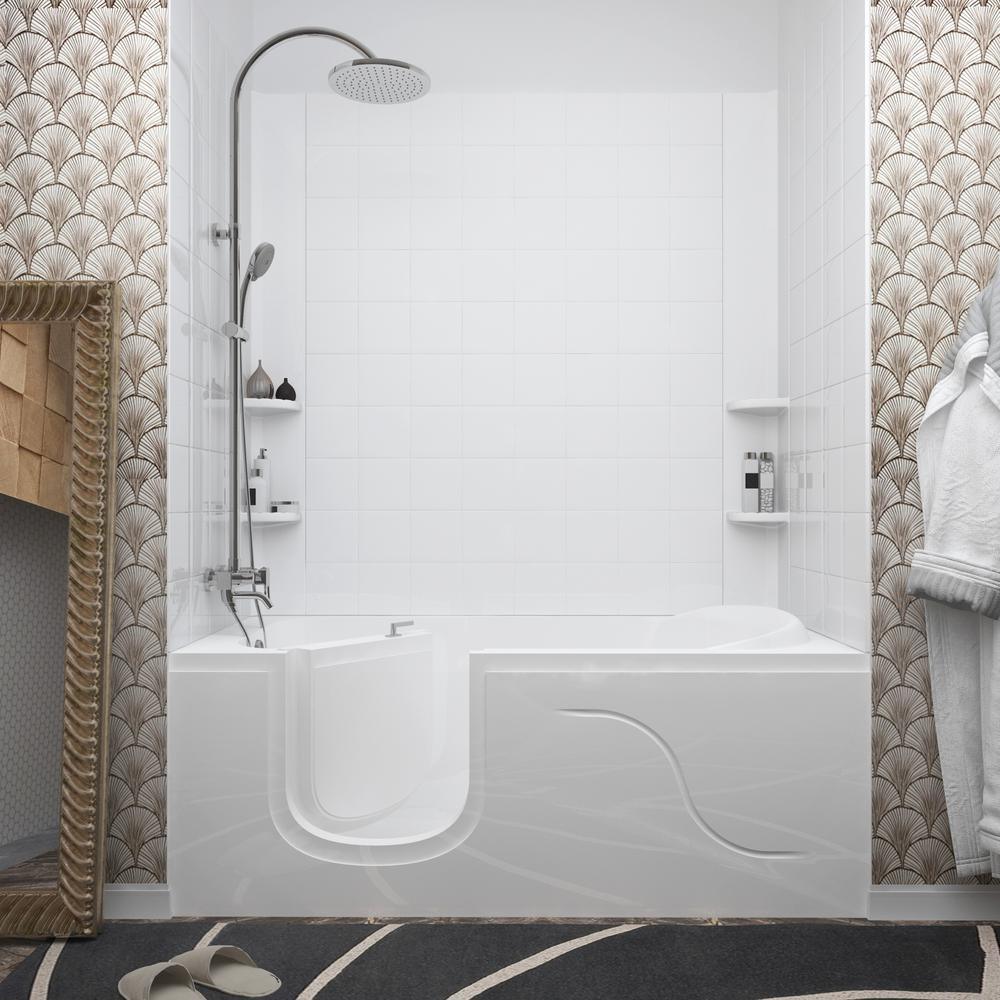 • Includes two (2) 60x60 in. 6 in. square tile rampart wall surround sheets, two (2) 60 in. tall corner caddies, ten (10) clear silicone tubes, double sided adhesive strips, two (2) caulking tubes, HDSI3060LWS walk-in bathtub