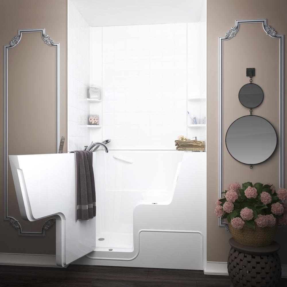 NOVA Heated Wheelchair Accessible 4.5 ft. walk-in bathtub with 6 in. Tile Easy Up Adhesive Wall Surround in White