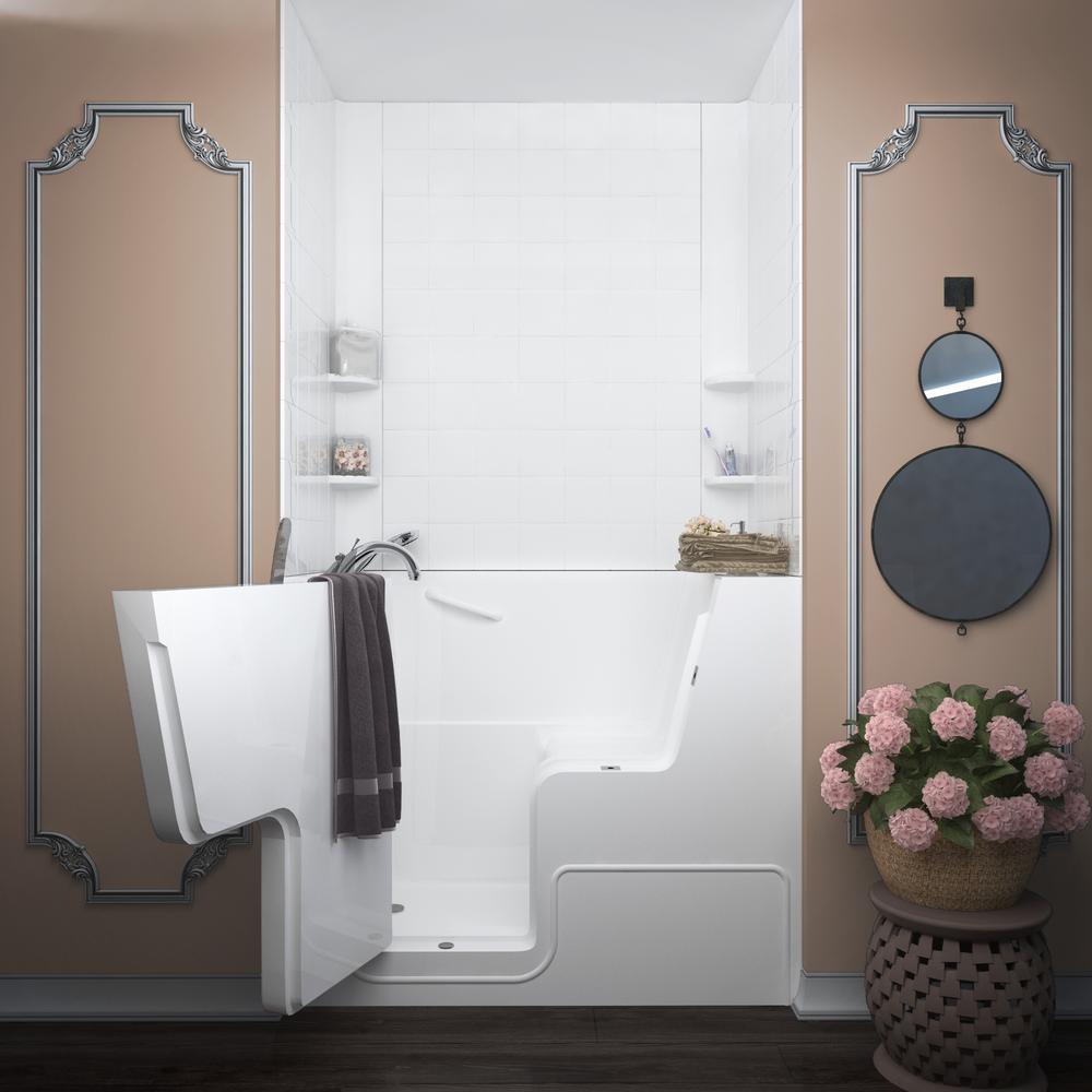 • Includes two (2) 60x60 in. 6 in. square tile rampart wall surround sheets, two (2) 60 in. tall corner caddies, ten (10) clear silicone tubes, double sided adhesive strips, two (2) caulking tubes, HD2953WCALWS Nova Heated walk-in bathtub