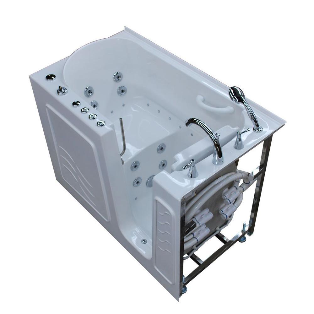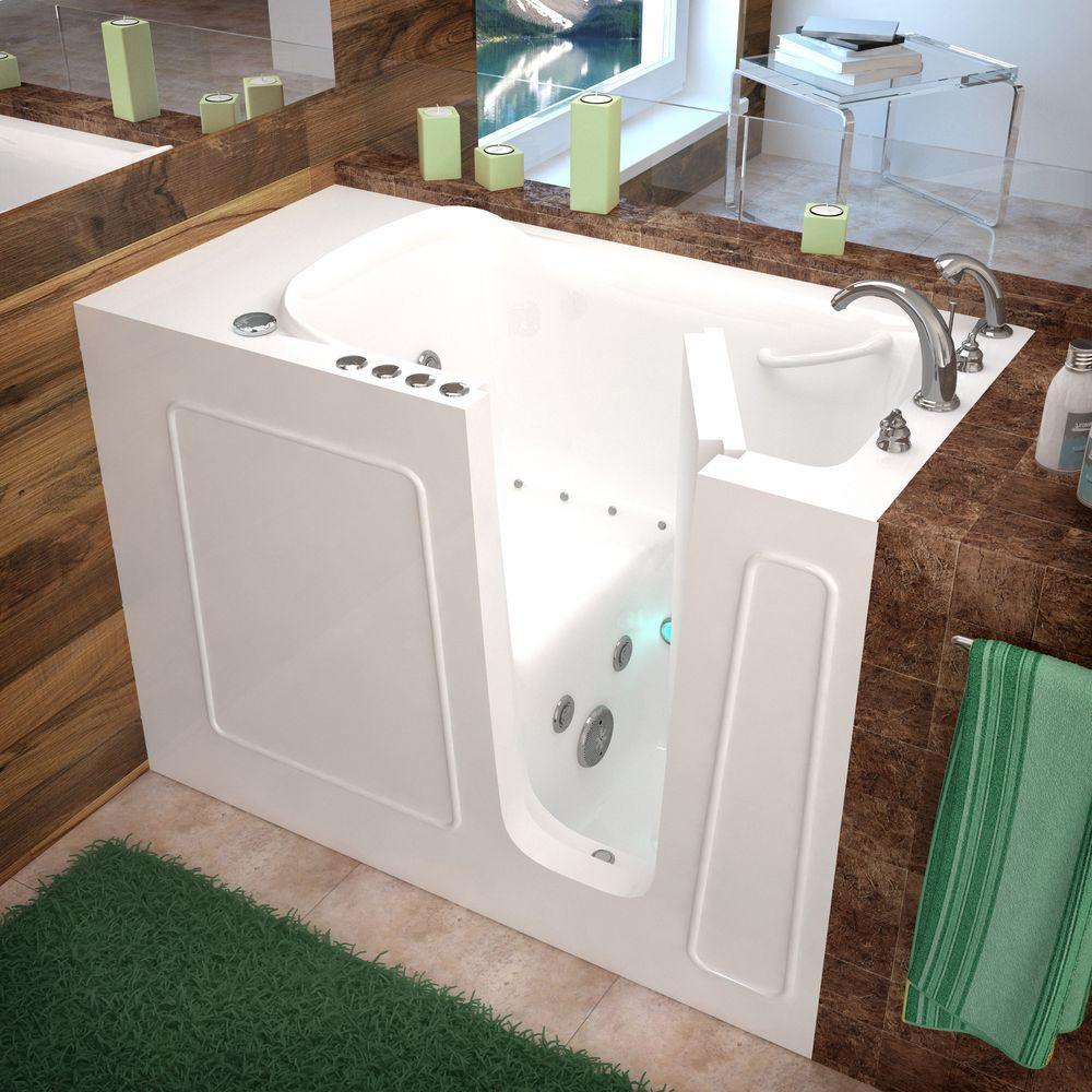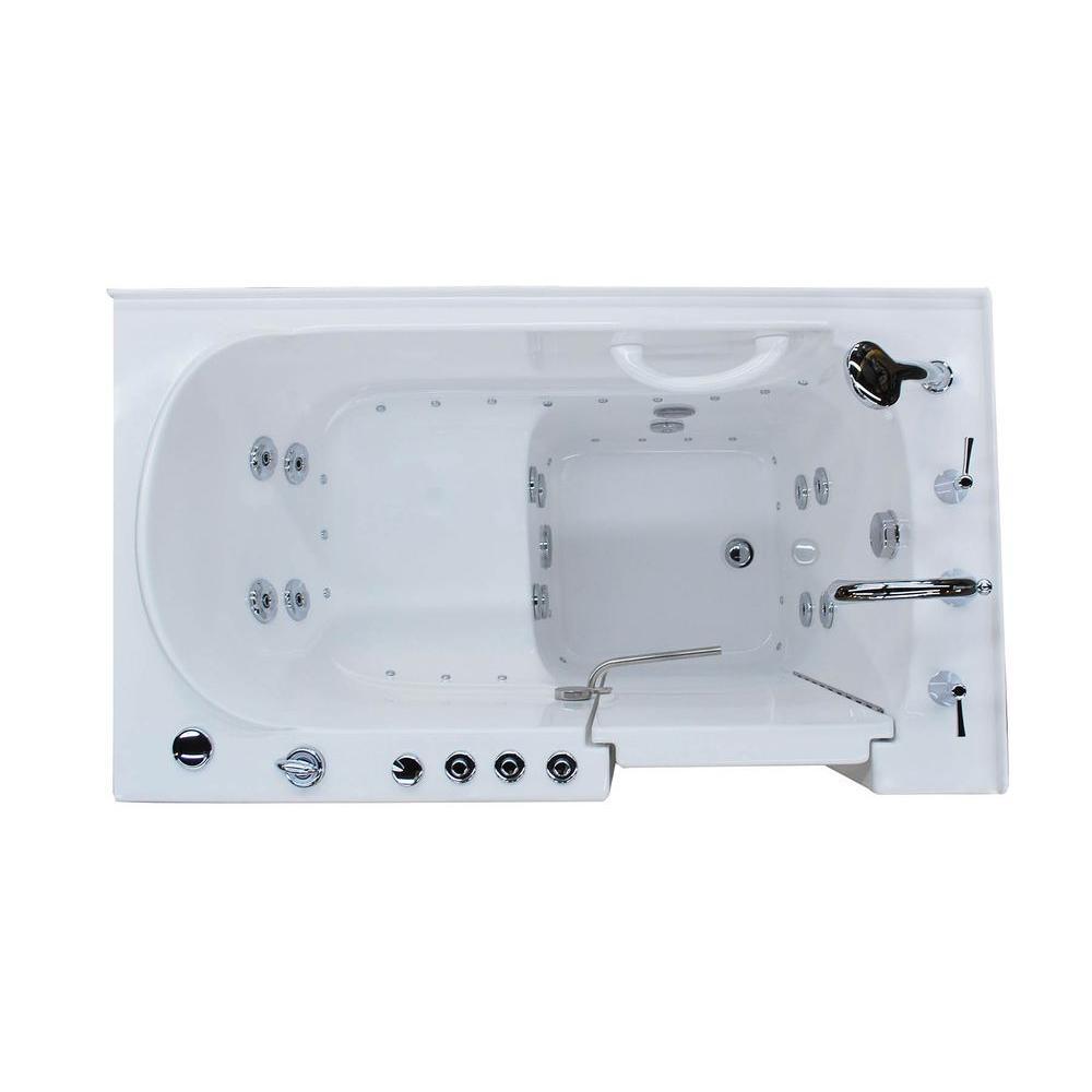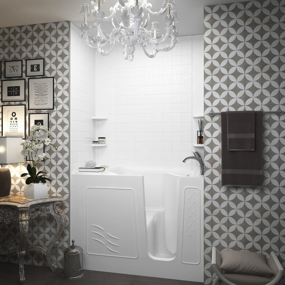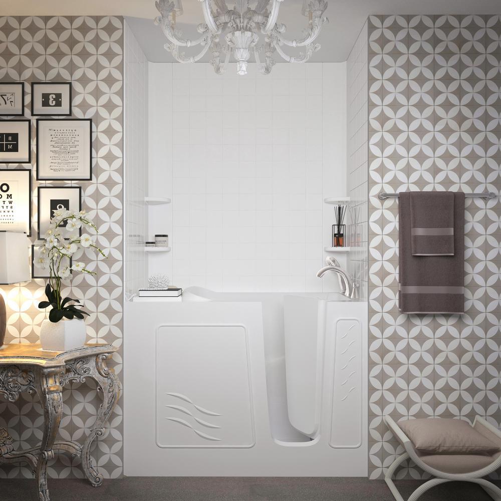 Rampart Nova Heated 4.5 ft. Walk-in Whirlpool and Air Bathtub with 4 in. Tile Easy Up Adhesive Wall Surround in White