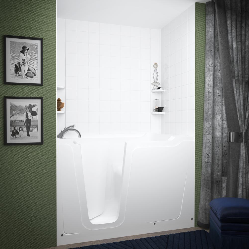 • Includes two (2) 60x60 in. 6 in. square tile rampart wall surround sheets, two (2) 60 in. tall corner caddies, ten (10) clear silicone tubes, double sided adhesive strips, two (2) caulking tubes, HD3660LWH Nova Heated walk-in bathtub