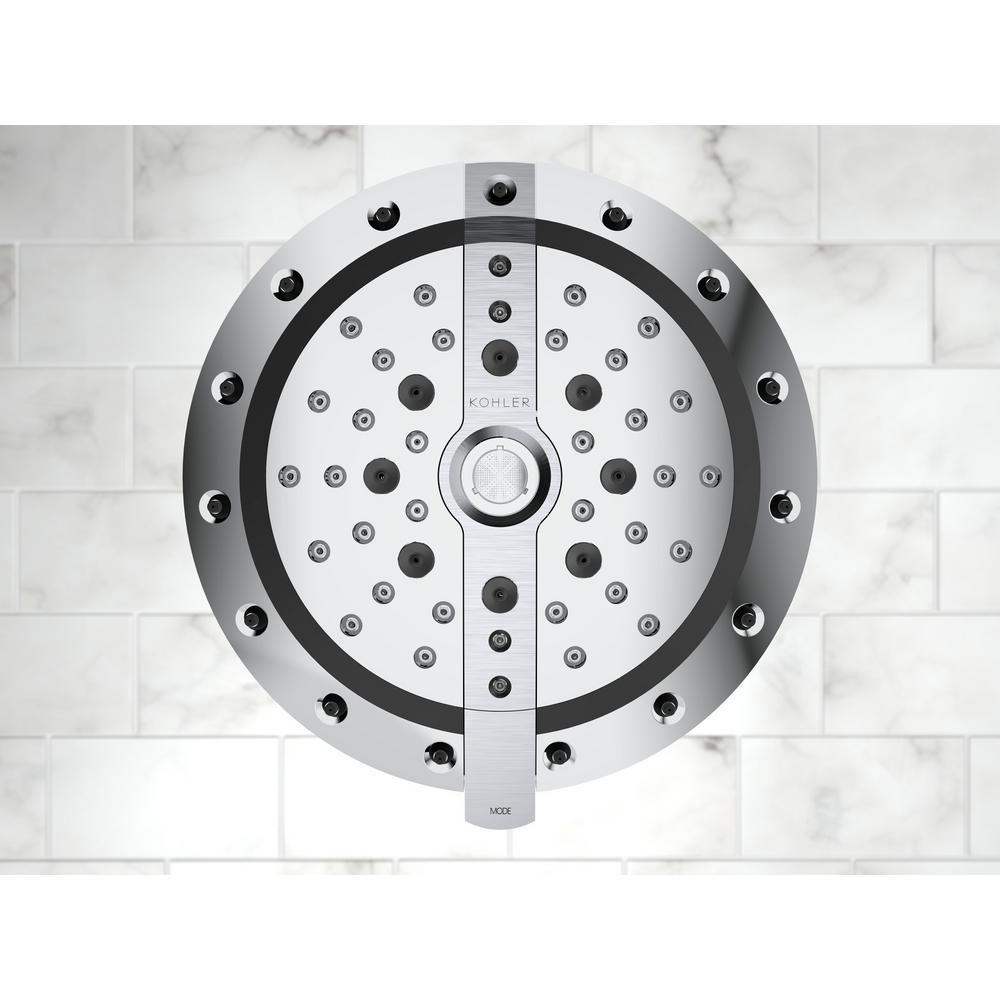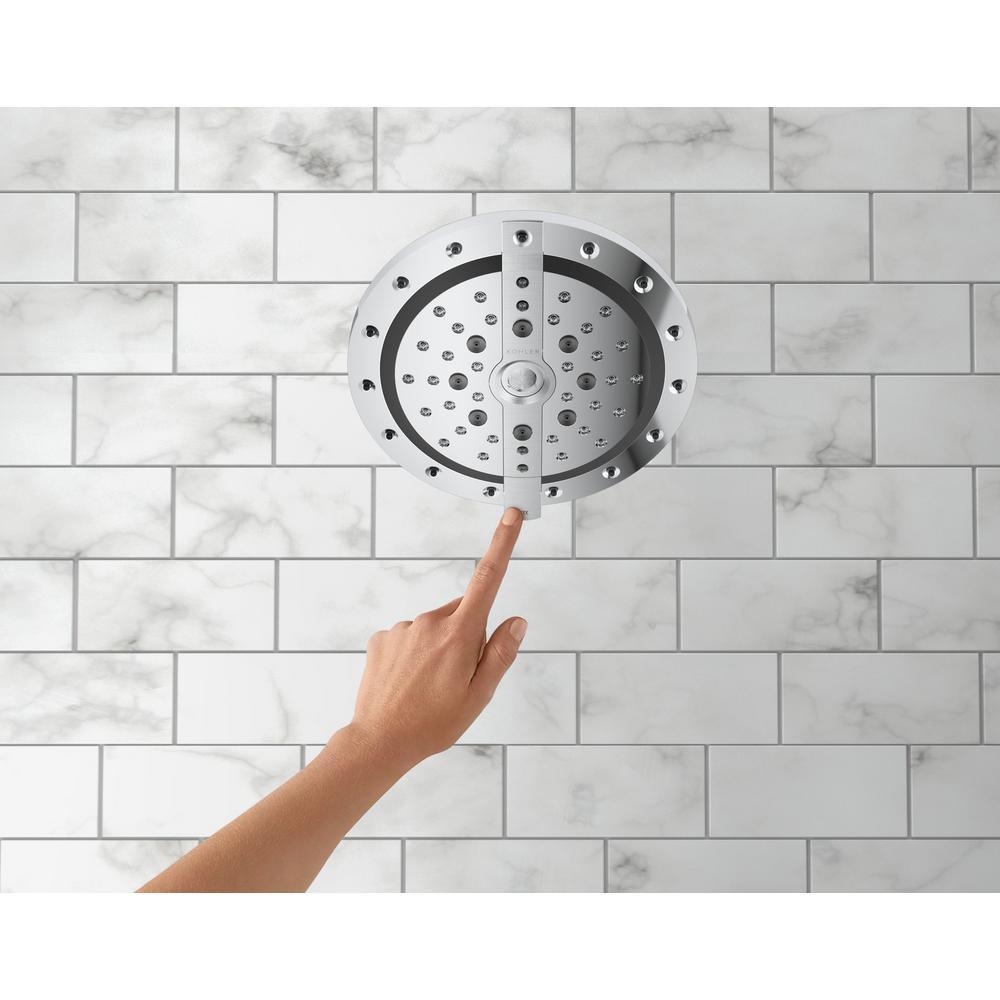 Experience total rejuvenation with the K-R29597 showerhead. Switch between six transformative spray settings with the push of a button. Energy in every drop: experience total rejuvenation with the KOHLER R29597 Recharge showerhead. Switch between six transformative spray settings with the push of a button: Full Coverage, Silk, Silk+, Silk + Massage, Massage, and Massage+. Whether you want a soft, relaxing rinse, a targeted water massage, or a full-on rain shower with large drops, the Recharge showerhead delivers your preferred experience.