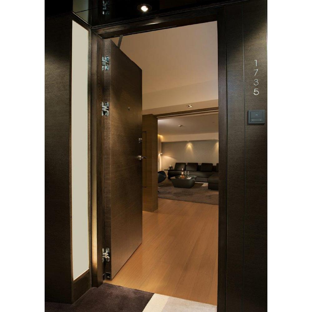 • Moving pivot point remains inside the hinge during travel, eliminating an external pinch point on the back side of the door