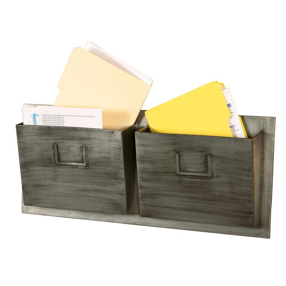 The Horizontal Industrial Mail Slot is perfect for hanging in an entry, hall, mud room or office. The rustic grey design easily complements a variety of color schemes and decor styles. Two 9 in. x12 in. slots hold papers, booklets, mail and magazines keeping your space tidy and organized.