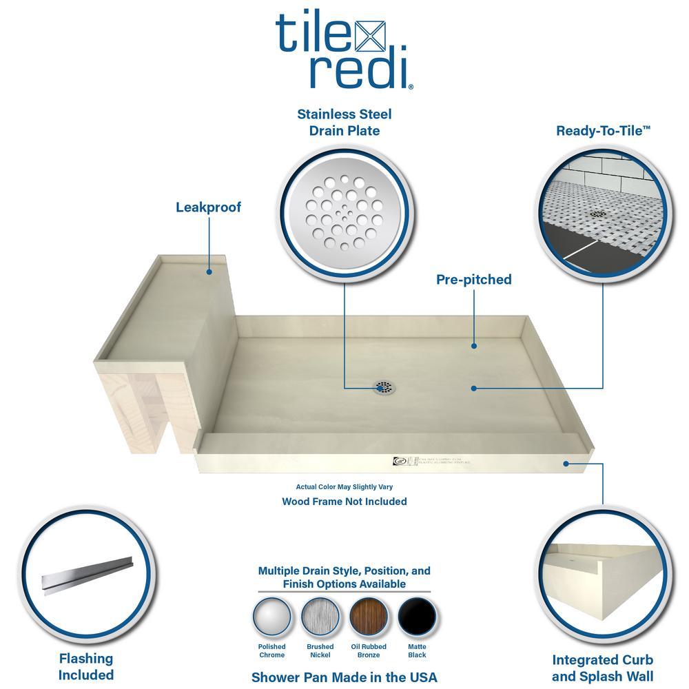 • Includes: bench, flashing, and leak-proof shower pan with integrated curb and splash walls