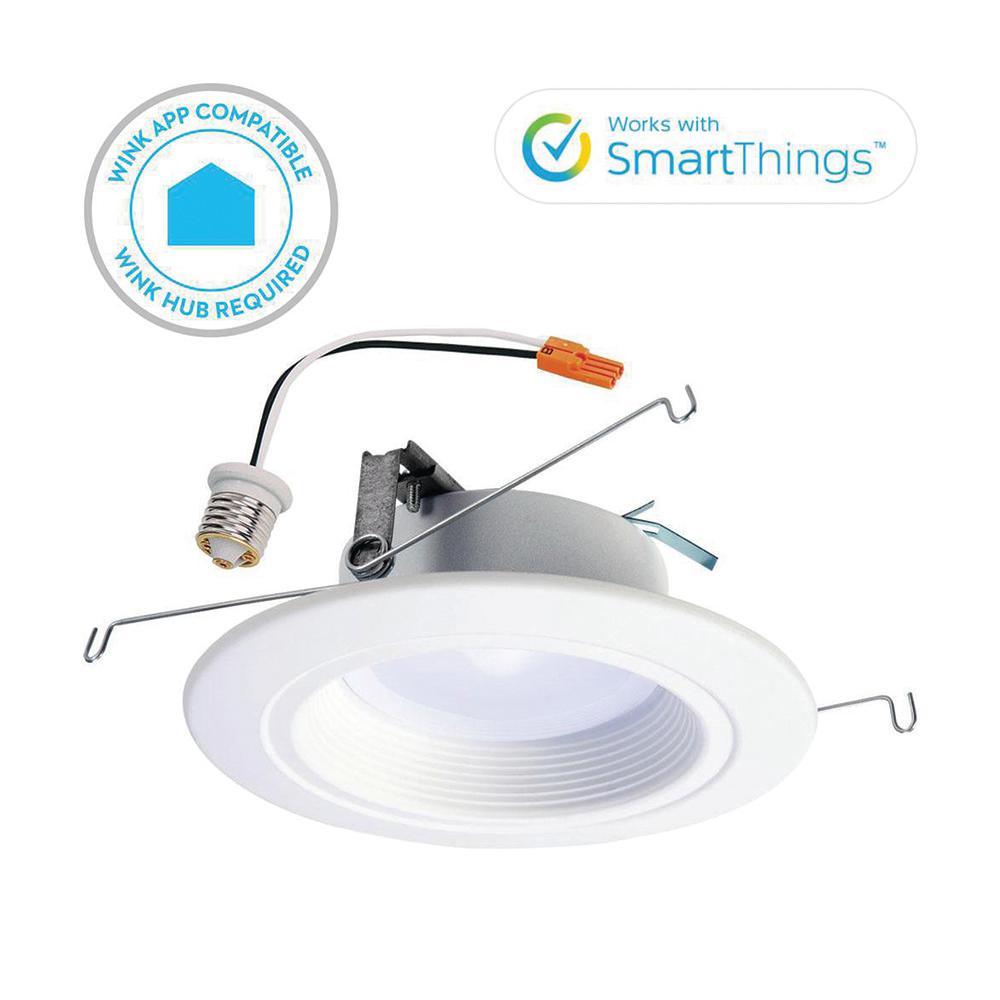 You have finally found a and convenient way to control your lights from anywhere. The Halo RL56 Zigbee Smart LED Downlight is a wireless, app-controlled light fixture that replaces a 65-Watt incandescent light bulb and trim. Emitting 685 Lumens (light output) and only using 9.5-Watt of electricity, use of the RL56 Zigbee will save you up to $350 in Energy Savings over the life of the fixture. It's so great, ENERGY STAR has certified it. Easy to install LED Retrofit Downlight, you can connect this light into your recessed housing (can) with no problem and you won't have to replace it for over 50,000 hours (or 22 years). This downlight comes with an Edison-base connector (screw-in base), to retrofit your existing housing. Also, this downlight comes with both torsion spring and friction blade (clip) attachment methods, so you can insert this light fixture in whichever way you'd prefer. Want to create a warmer feeling in your room. No problem, change the color temperature directly from your app, ranging from 2700K - 5000K (warm white to cool blue). Optimal for ceilings between 8 ft. - 10 ft. this very wide flood light can also be used in wet or damp locations (i.e. above your bathtub, shower areas or covered outdoor patio). From entertaining friends for an evening cocktail party to hosting an afternoon brunch, simply use your app to adjust the dim level of your lights (all the way down to 5%).