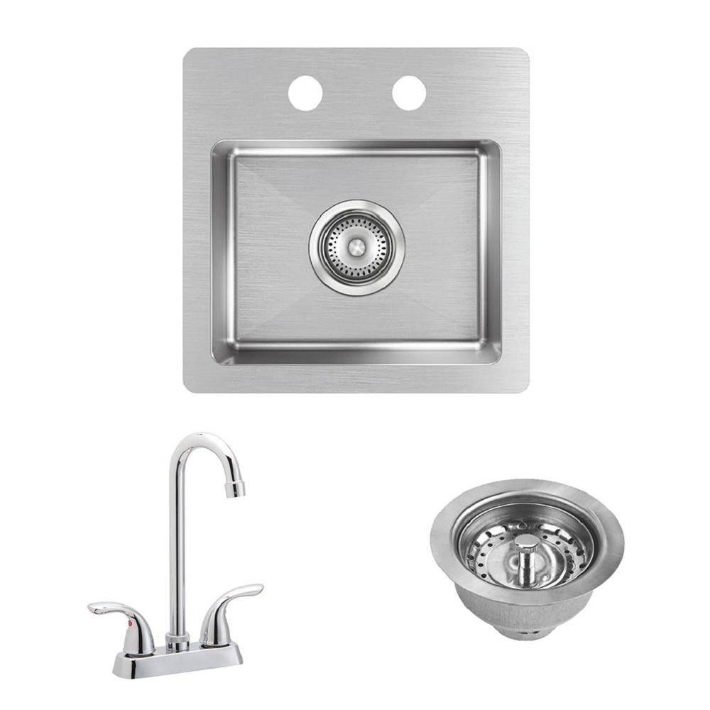 Crosstown Drop-In/Undermount Stainless Steel 15 in. 2-Hole Single Bowl Bar Sink