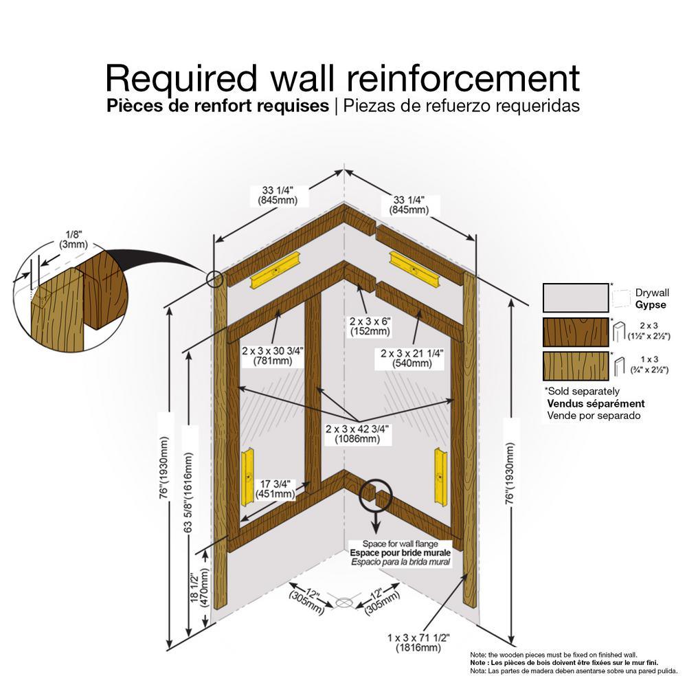 Cyrene 34 in.x 76 in. Off-Center Corner Shower Kit w/Semi-Frameless Clear Sliding Door Base and Wall Kit in White,Chrome