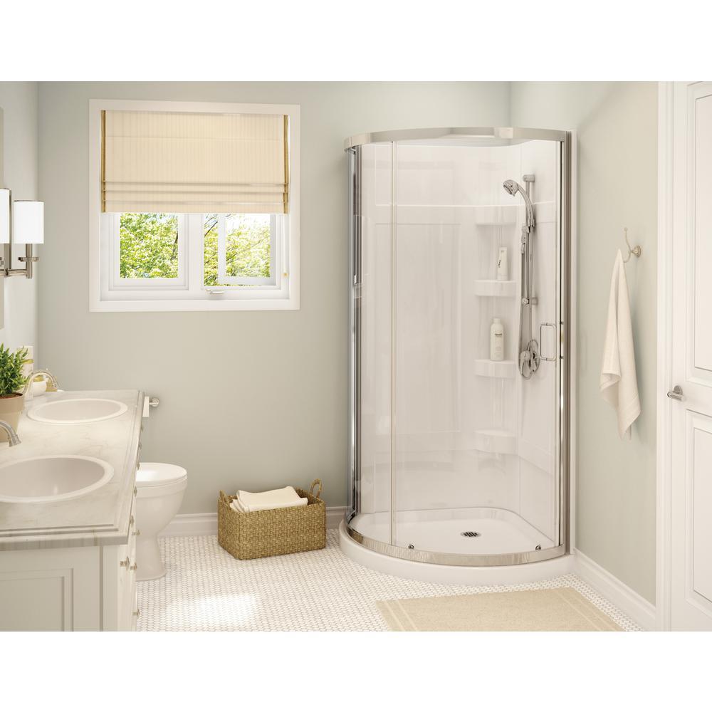 The Cyrene shower will provide a stylish showering area to your bathroom. This round shower kit features a sliding door with a smooth and silent roller system and a low 3 in. threshold base allowing for an easy shower access. The aluminum chrome frame also comes with a choice of glass finishes from clear to privacy.