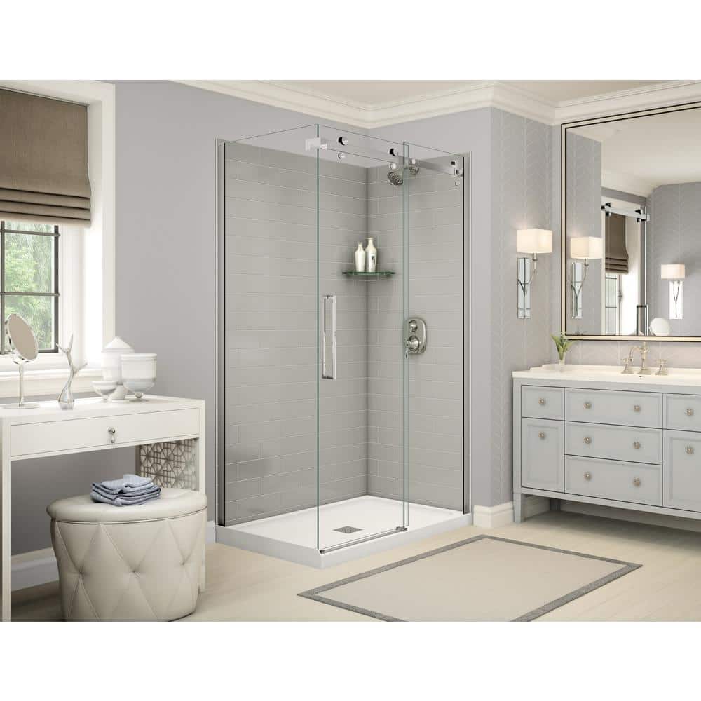 Utile Metro 32 in. x 48 in. x 83.5 in. Center Drain Corner Shower Kit in Soft Grey with Chrome Shower Door