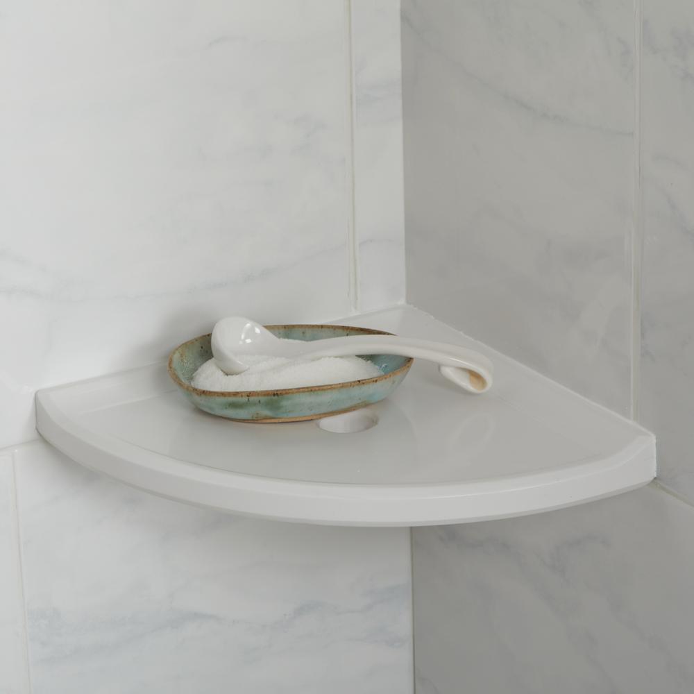 Restore 8 in. W Resin Wall Mounted Corner Shower Shelf Tile in White