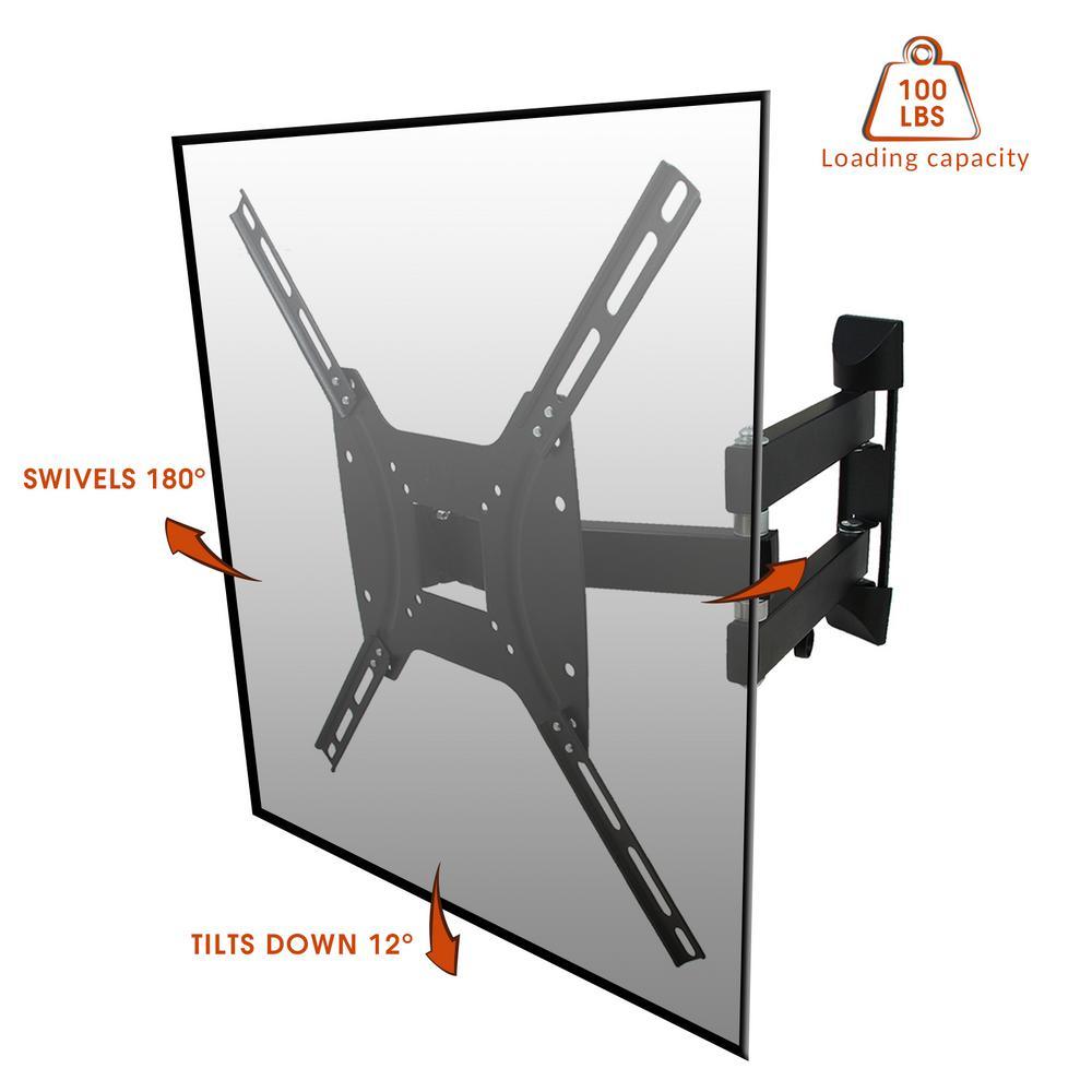 This Full motion Wall mount can tilt, swivel and retract. Constructed of durable material, it can securely hold your LED/LCD/Plasma Television with an ease. Mount fits most 26 in. to 55 in. TV's.
