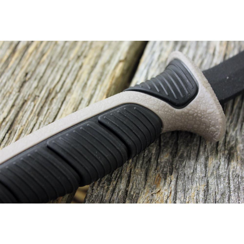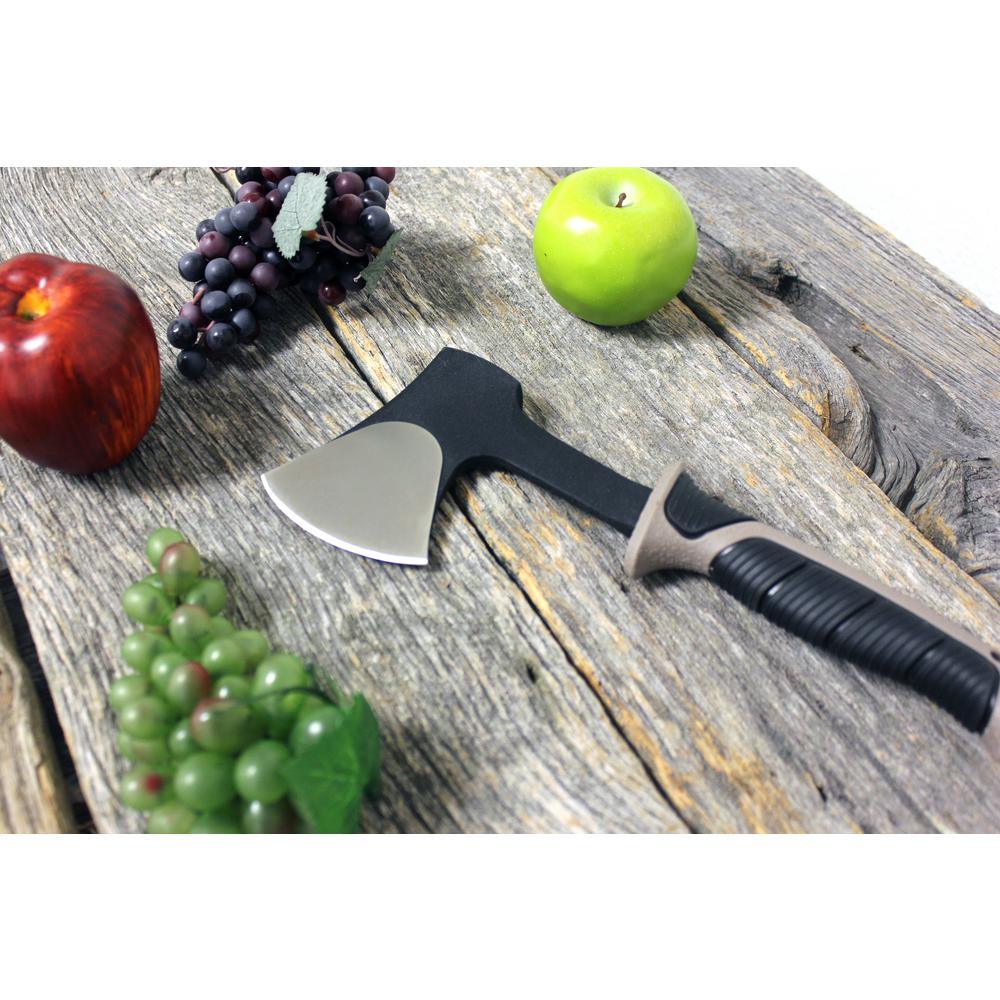 With the EverSlice knife series, we offer a set of long-lasting, precision blades that are ideal for outdoor use. Designed and tested in the field by actual hunters and outdoorsmen, this 12 in. stainless steel hand hatchet is built from the ground up to be the answer to any challenges nature may throw your way. Use the heavy, durable blade to chop small logs and wood, or turn it around and use the poll (the back of the head) as a hammer to pound in tent stakes. An ergonomic, polypropylene handle ensures a solid, safe, and comfortable grip. Blade features a titanium PVD, non-stick coating to increase hardness, improve the life of the blade, and reduce wear through repeated use. Includes a handy sheath.