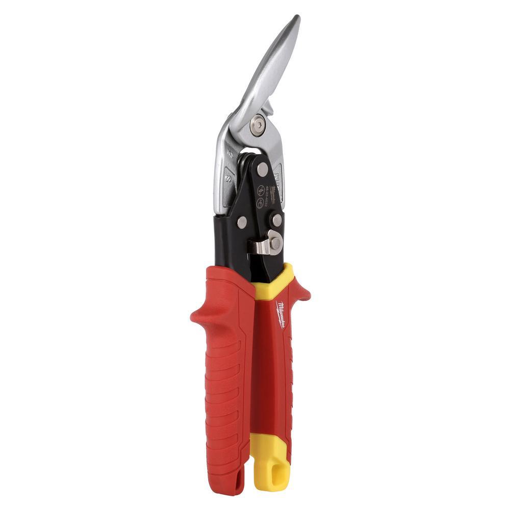 Cut more metal than ever with Milwaukee Aviation Snips. The forged blades deliver up to 10X more cuts than cast blades. Bolt Lock prevents the blades from loosening and a durable chrome plating provides rust resistance. A metal lock secures the tool for storage and easily operates with 1 hand. The offset model features a 45 offset handle for clearance over the cut material. Designed for straight cuts.