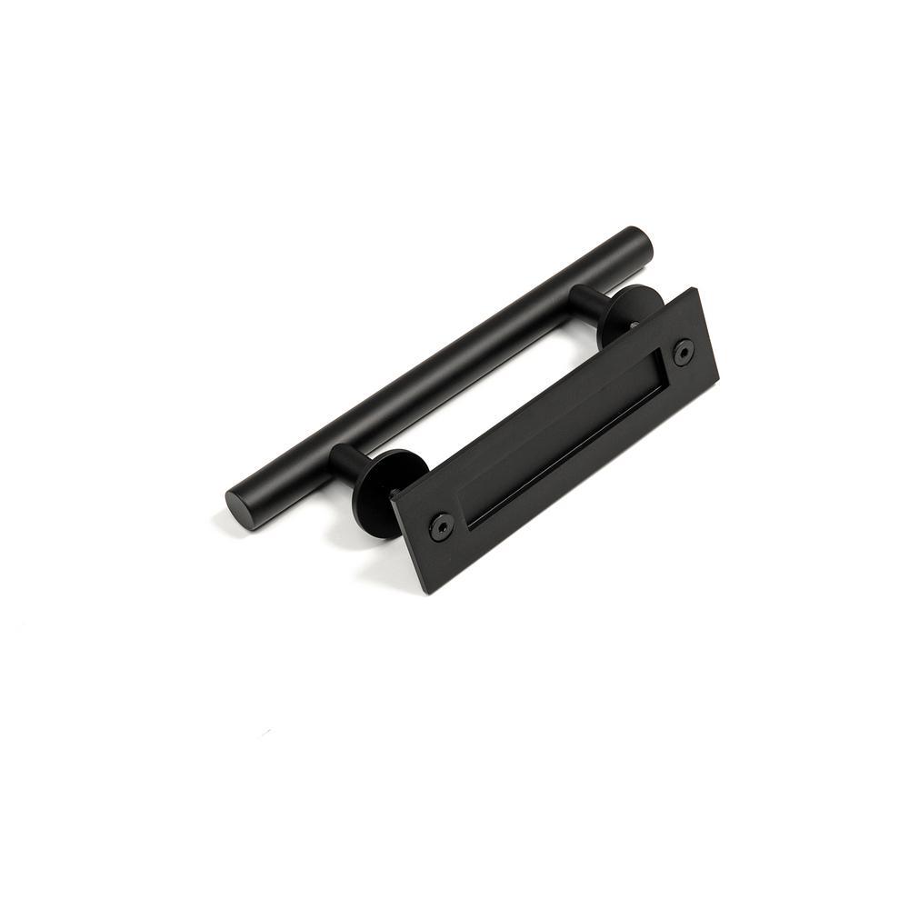 Contemporary 12 in. Black Powdered Ladder Pull and Flush Sliding Barn Door Handle