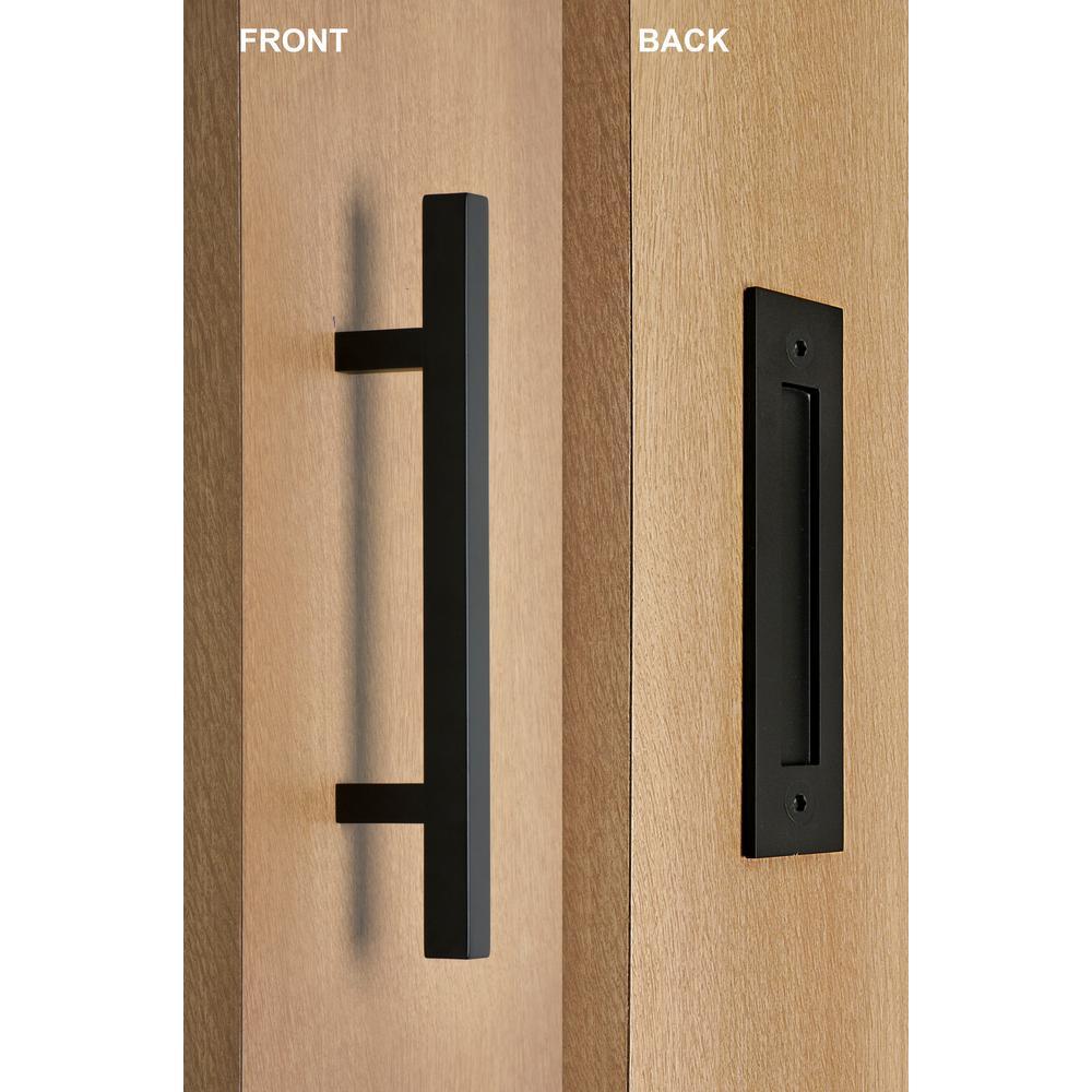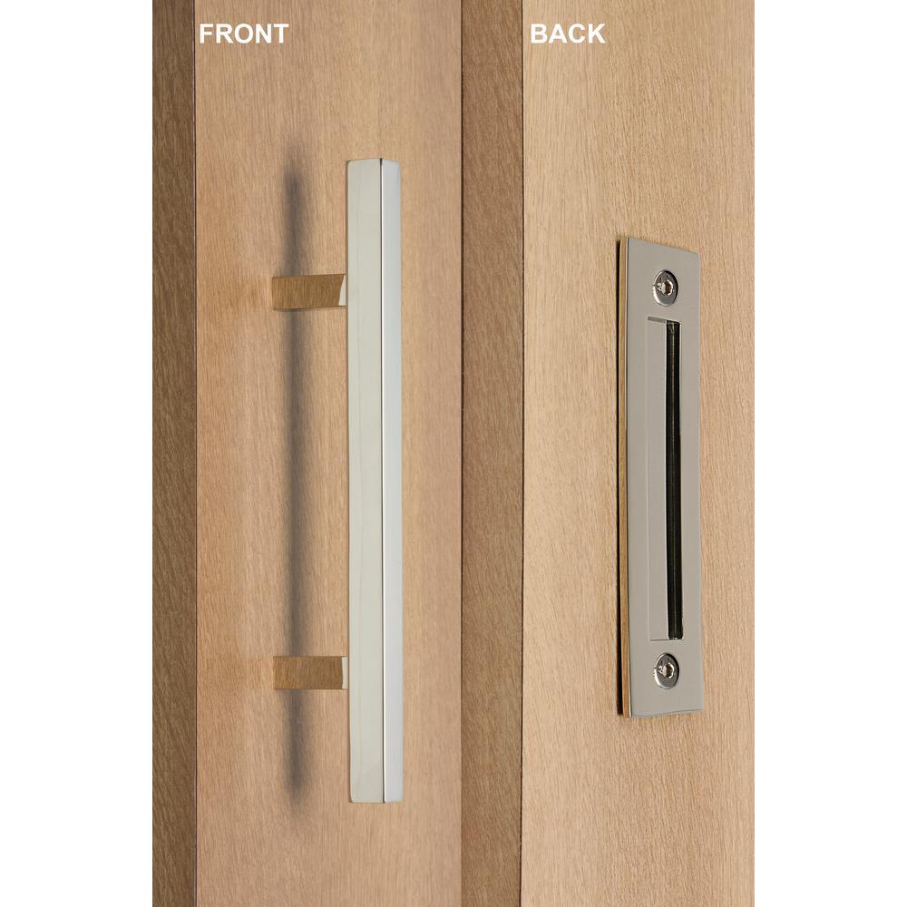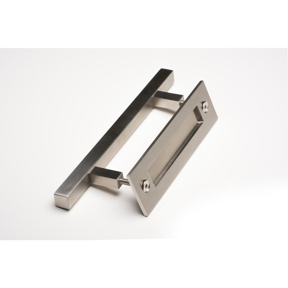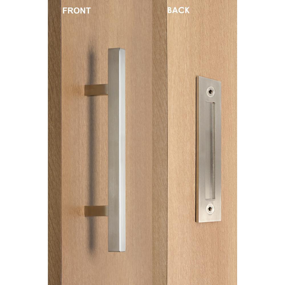 Contemporary 12 in. Brushed Satin Square Pull and Flush sliding barn door handle