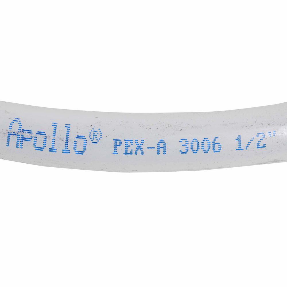 Apollo ExpansionPEX is PEX-A pipe made with cross-linked polyethylene tubing for use in potable water piping systems. Developed using a Peroxide method, Apollo ExpansionPEX has the highest cross-linking rate among all PEX pipes and has been used for over 50 years. This flexibility makes it suitable for even the most demanding environments. With red, white, and blue print lines, Apollo ExpansionPEX allows for easy identification of cold water, hot water, and main water lines. Along with brass fittings, poly alloy fittings, manifolds, valves, fasteners, and tools, the comprehensive Apollo ExpansionPEX system can be used for both simple and complex water delivery systems. The pipe is opaque in color with a blue print line, allowing for the identification of cold-water distribution lines within a piping system. It is compatible with both expansion and joining methods such as crimp, clamp, or sleeve, and Tectite by Apollo push-to-connect fittings.