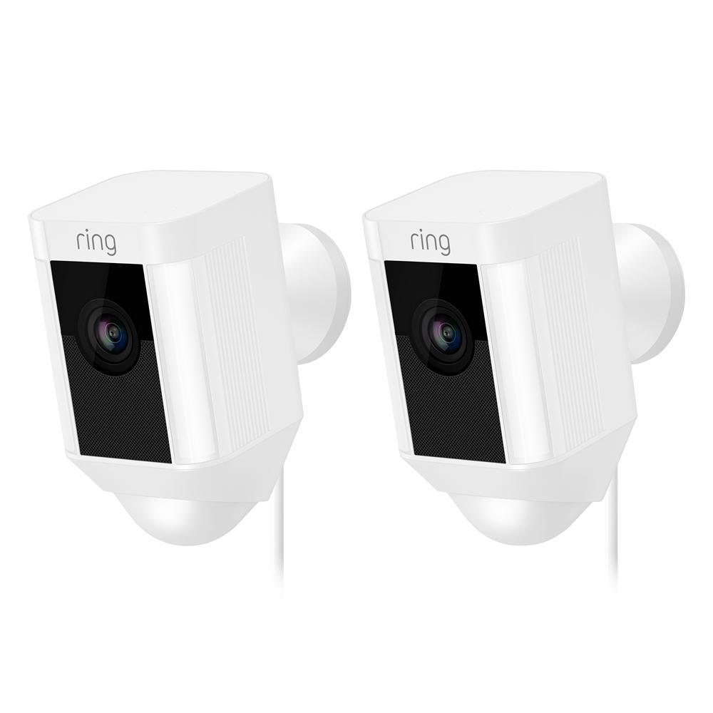 Get non-stop security and non-stop power with Ring Spotlight Cam Wired, a motion-activated security camera with 2-way audio, LED spotlights and a siren alarm. Armed with 1080HD video, custom motion zones and simple plug-and-play installation, Ring Spotlight Cam Wired adds smart security to every corner of your home. Ring Spotlight Cam Wired lets you create and customize your own motion zones, so you can focus on the most important areas of your home. When anyone steps on your property and triggers your motion sensors, you’ll get an instant alert on your phone, tablet and PC. Answer the alert and you can see, hear and speak to people on your property from anywhere. Ring also lets you check-in on your property at any time with Live View, so you can get streaming video and audio right at your fingertips. Its built-in night vision and LED spotlights allow you to protect your home around the clock and get high-quality HD video in any setting. And if you catch a suspicious person at your home, you can sound the 110dB alarm to scare them away. Ring Spotlight Cam Wired plugs into standard power outlets, so you’ll never have to worry about charging a battery and it comes with everything you need to get your camera setup in just a few minutes. With your purchase, you’ll also get a free 30-day trial of Ring Video Recording, so you can review, save and share all your videos at any time.