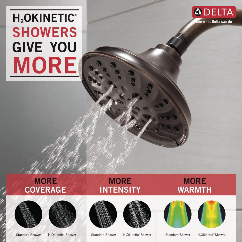 Replacing your shower head is one of the quickest, simplest upgrades you can make to your shower. Our shower heads feature a wide range of styles and innovations, and install in less than 20 minutes - no special tools required. While other products may gather unsightly mineral build-up over time, Delta soft rubber Touch-Clean spray holes allow any mineral residue to simply be wiped away for an instantly refreshed look with no need for soaking or the aid of chemical cleaners. The pause setting gives you ample space for shaving, lathering and other shower tasks, then easily restarts the water with the temperature where you left off. This spray setting helps you conserve water, so you can worry less about depleting your supply of hot water - and you help the environment too. Delta WaterSense labeled faucets, showers and toilets use at least 20% less water than the industry standard saving you money without compromising performance.