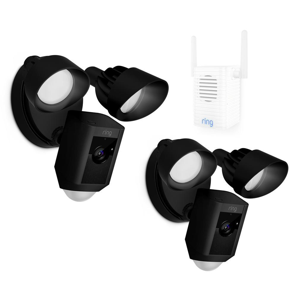 Keep the perimeter and outdoor areas of your home safe with this Ring Floodlight Cam. It’s the first HD security camera of its kind that has a siren alarm with two-way talk functionality. The 30-day free trial of video recording is included to review, save or share videos from the Ring that start when motion is detected from the Floodlight Cam. This cam features Chime Pro that extends the Wi-Fi from your router to the Ring devices. All you need to do is plug Chime Pro into a standard power outlet, connect it to your home Wi-Fi and all your Ring devices and you’re all setup. You will receive an alert on your phone or tablet to let you know when someone is at your home. Answering the alert allows you to see, hear and speak to people on your property from anywhere. The Floodlight Cam connects to a standard junction box and easily replaces your existing wire floodlights.