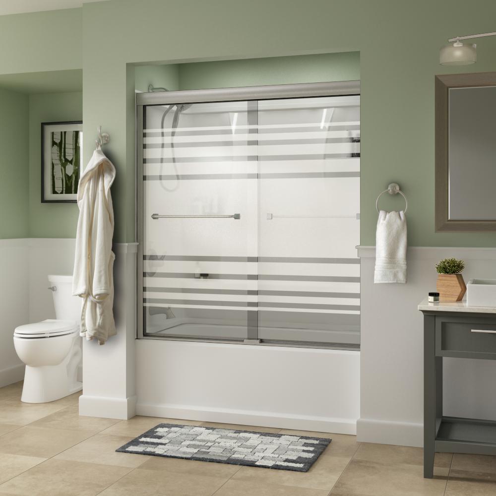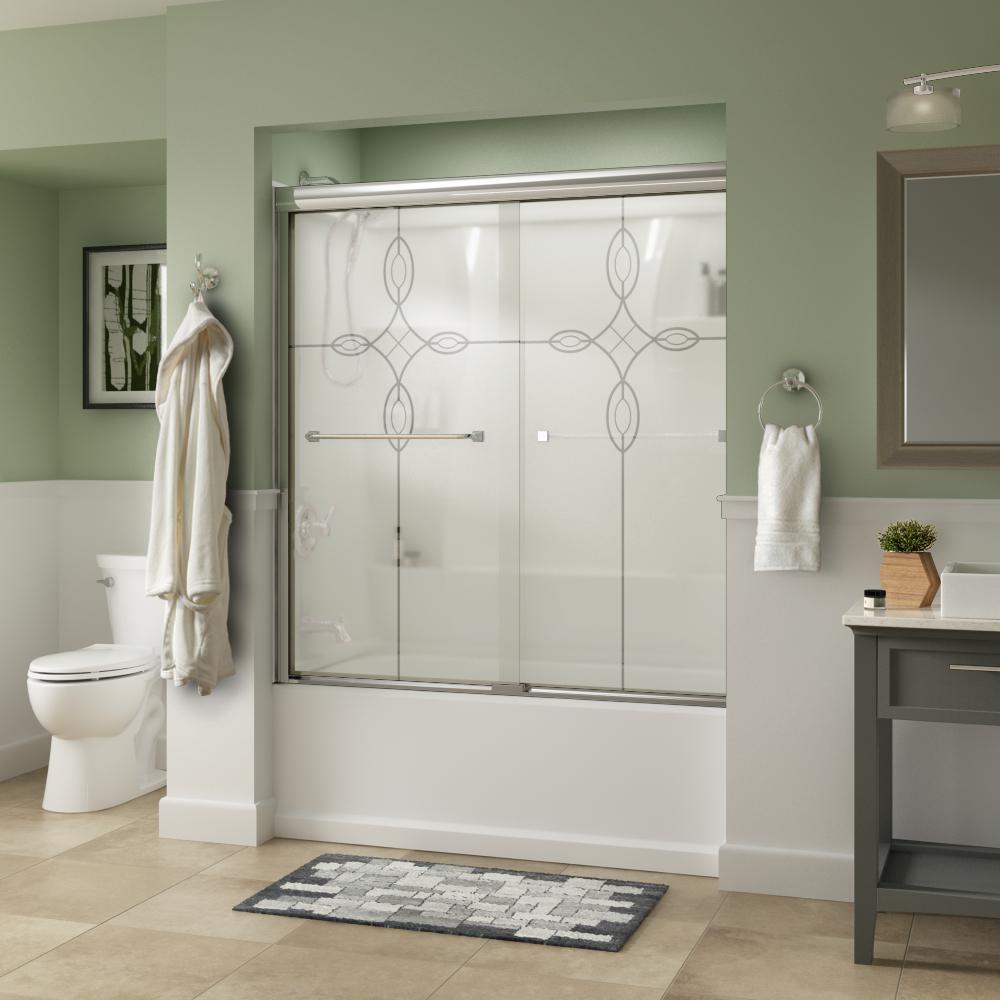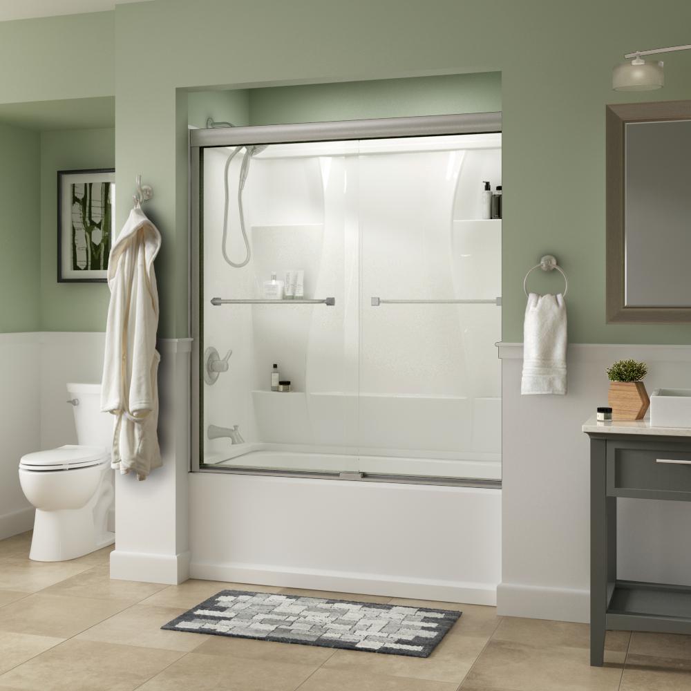 • Traditional sliding bathtub door designed to accommodate out-of-plumb (uneven, not vertically level) conditions totaling 3/8 in.