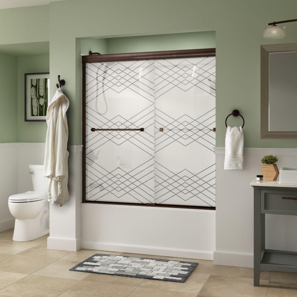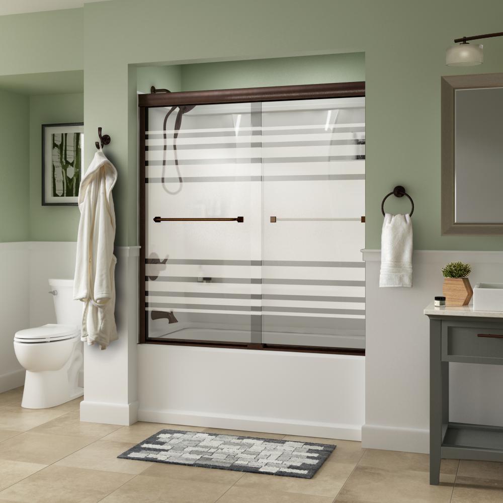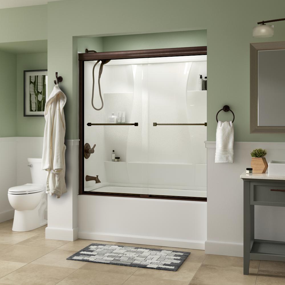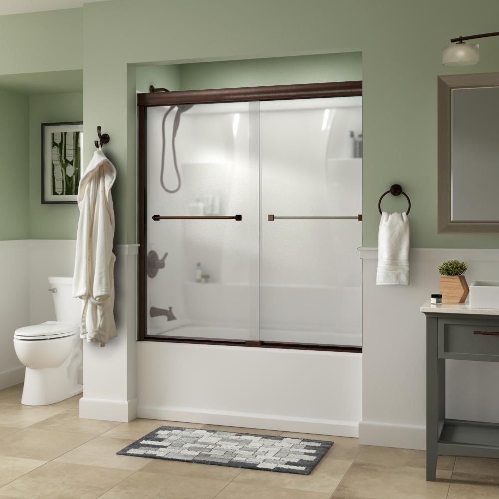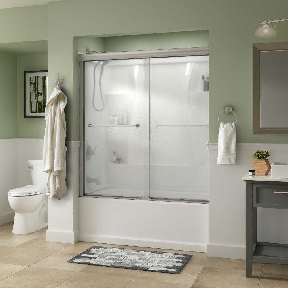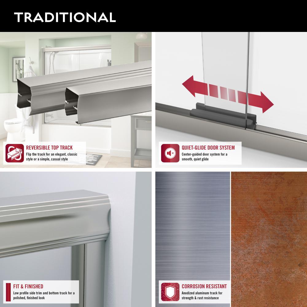 • Traditional sliding bathtub door designed to accommodate out-of-plumb (uneven, not vertically level) conditions totaling 3/8 in.