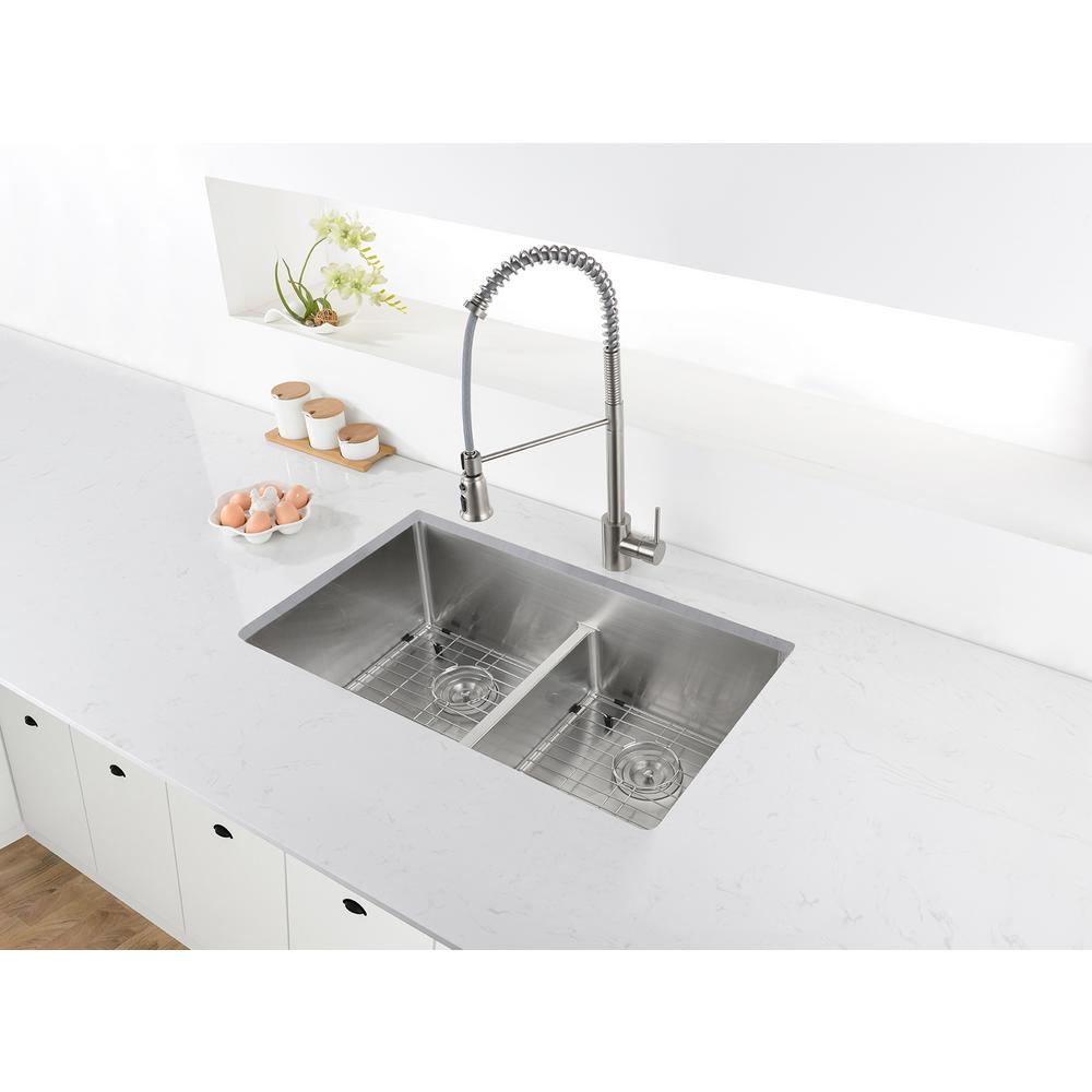32 in. Low-Divide Double Bowl 50/50 Undermount 16-Gauge Stainless Steel Kitchen Sink