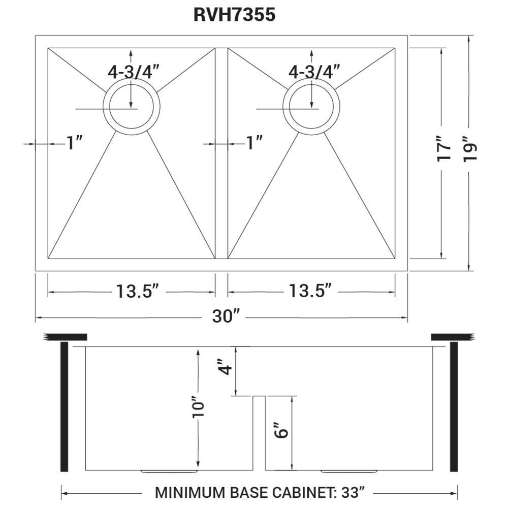 • Included in box: sink, cut-out template, mounting brackets, bottom rinse grids (set of 2), 2 basket strainer drain assemblies