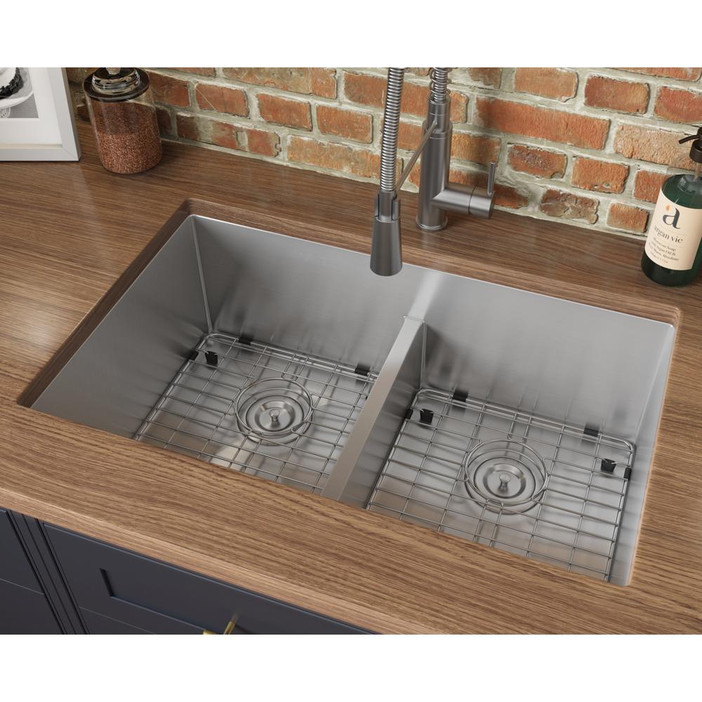 • Includes stainless steel bottom rinse grids that protect the sink from scratches and acts as a drying rack for pots and pans