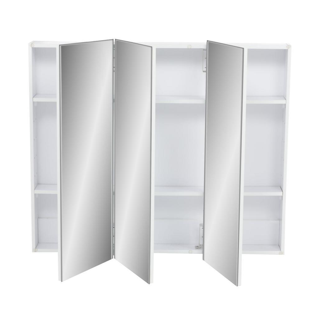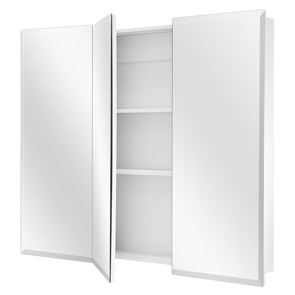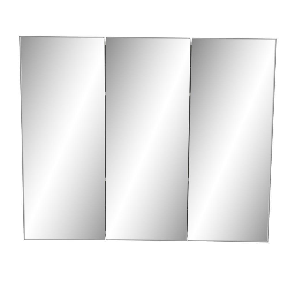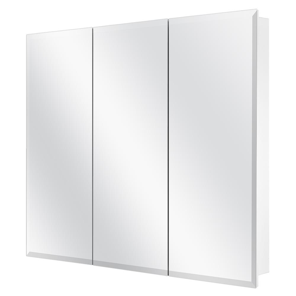 Add a classic touch to your bathroom or powder room with the 36-3/8 in. W x 30 in. H Glacier Bay Frameless Surface-Mount Tri-View Bathroom Medicine Cabinet. Featuring a beveled mirror and two adjustable shelves, this cabinet offers easy, quick storage. The tri-view mirror provides multiple viewing angles for added functionality. Constructed of MDF for exceptional strength and durability. Double shelf pegs make it quick and easy to customize your space. Fully assembled for your convenience.