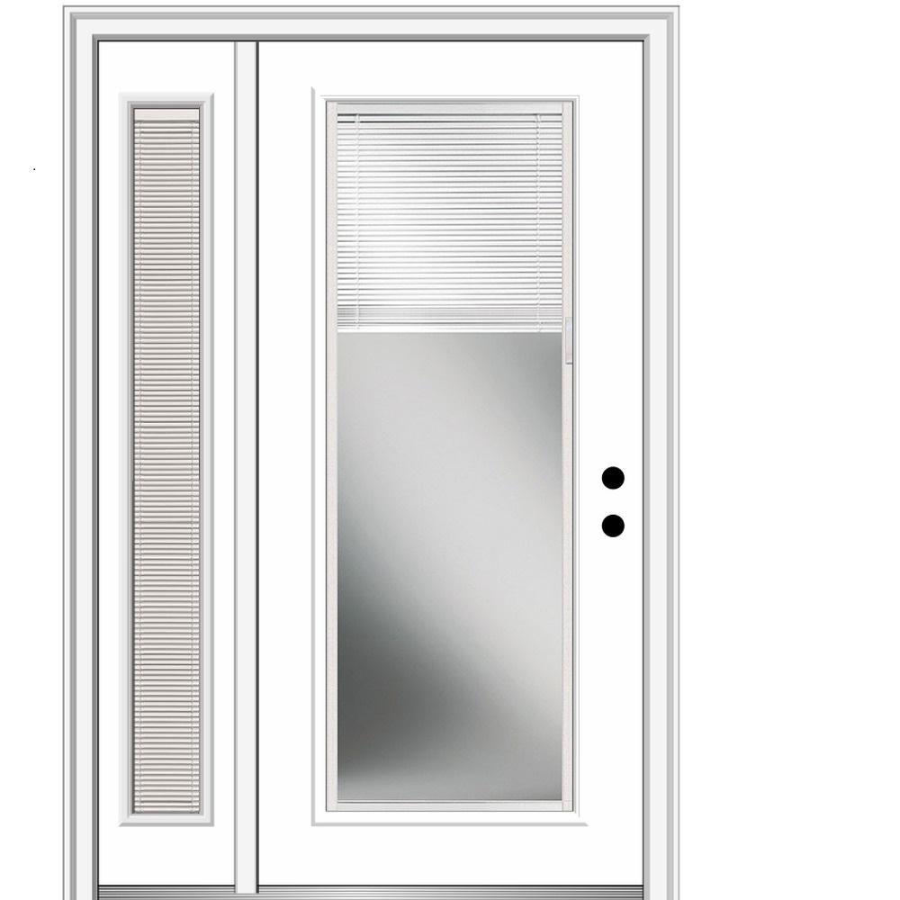 53 in. x 81.75 in. Internal Blinds Right Hand Inswing Full-Lite Primed Steel Prehung Front Door with One Sidelite