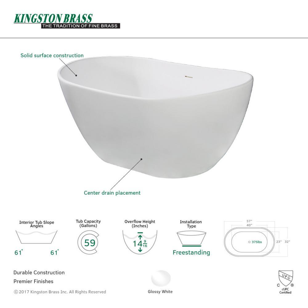 Collete 56.3 in. Solid Surface Flatbottom Freestanding Bathtub in White