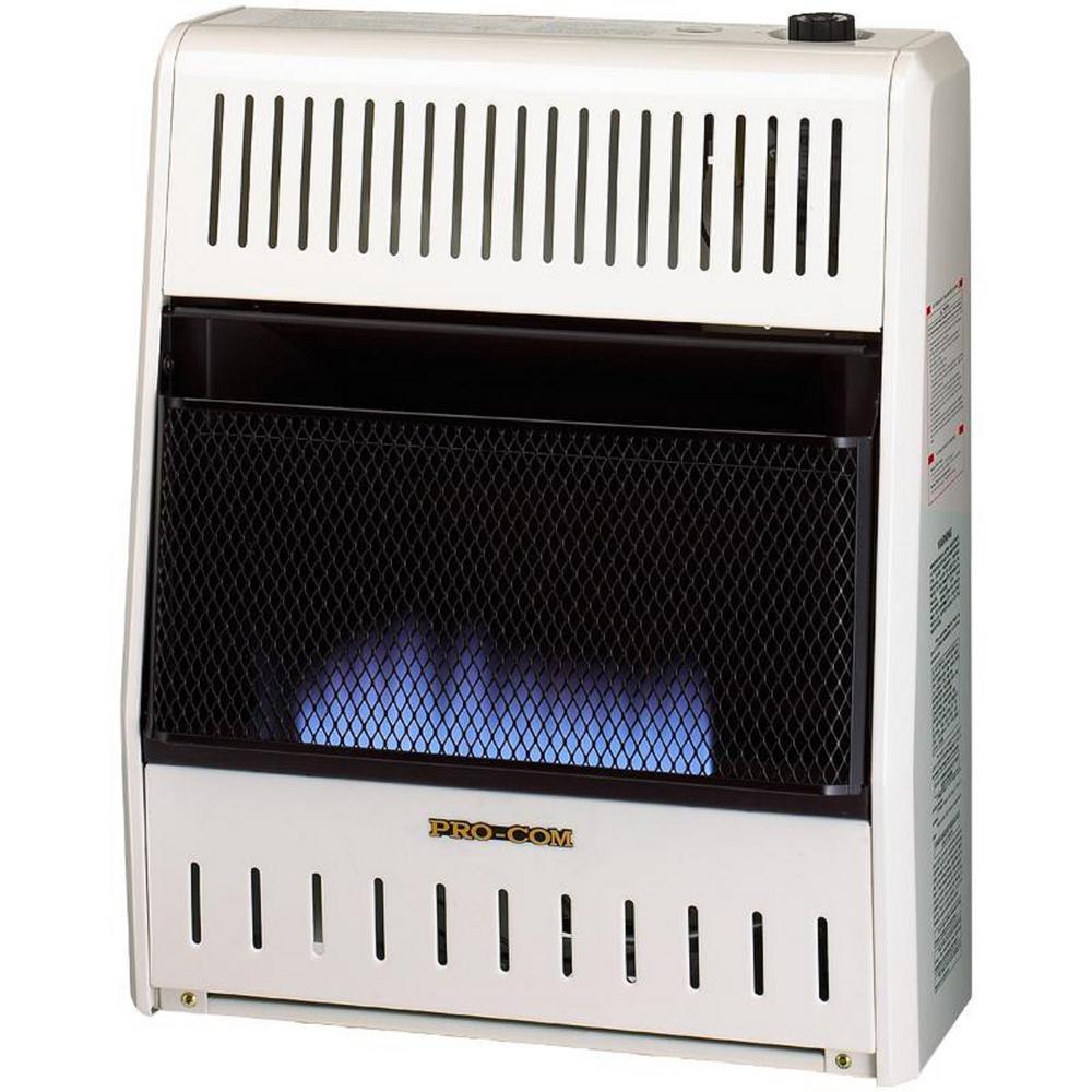 The ProCom Dual Fuel Blue Flame Ventless Wall Heater is a blissfully warm and efficient option of interior home heating. This unit can be fitted for natural gas or liquid propane and produces beautiful blue flames for convective, whole-room heating. The Blue Flame Heater operates at 99% fuel efficiency and saves you money as it keeps you cozy and an oxygen depletion sensor is built in to the design.