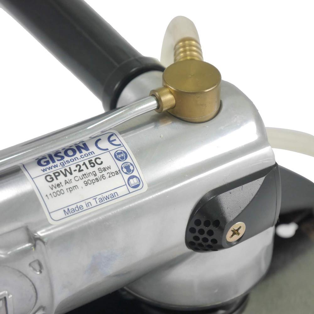 GPW-215C is modified based on popular wet air grinder GPW-215. It will accept 5 in. diamond blade, and are used for wet hand cutting of granite, marble and concrete. It will work with up to 1-1/4 in. thickness.