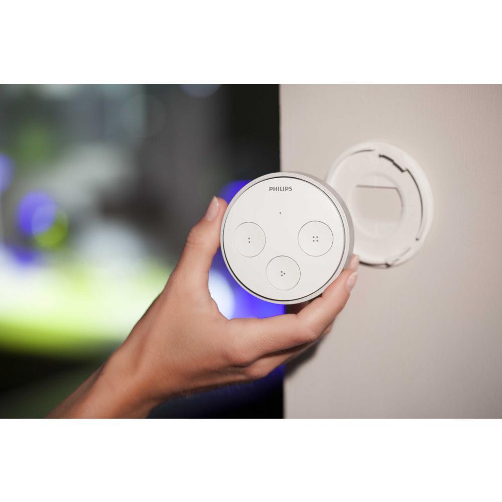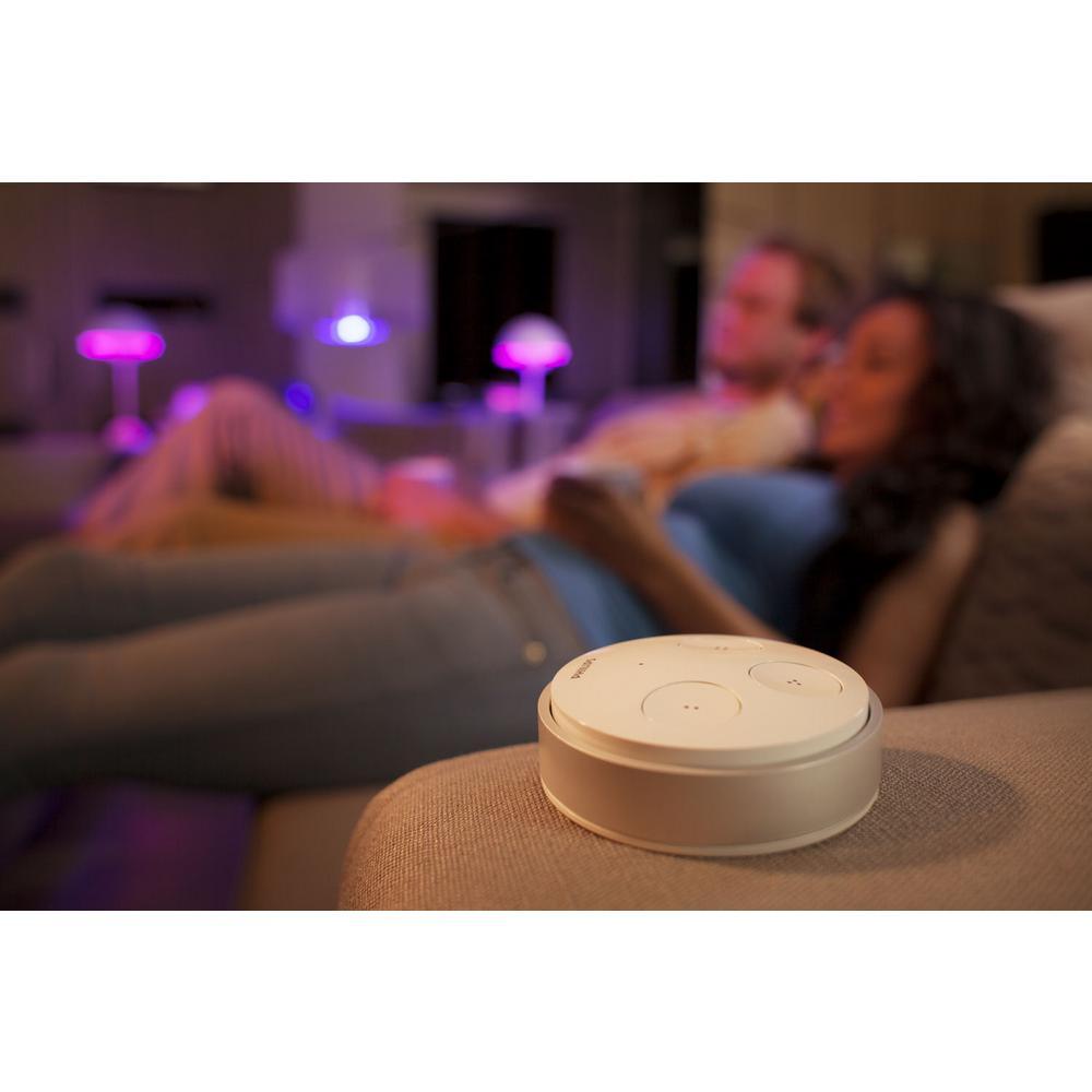 The Hue Tap provides portable, wireless controls of you Hue smart lighting system. Access up to 4-light scenes with the push of a button. Great as a backup when your smartphone is charging or in use, the Hue Tap is a familiar, convenient addition to your Hue Personal Wireless Lighting System.