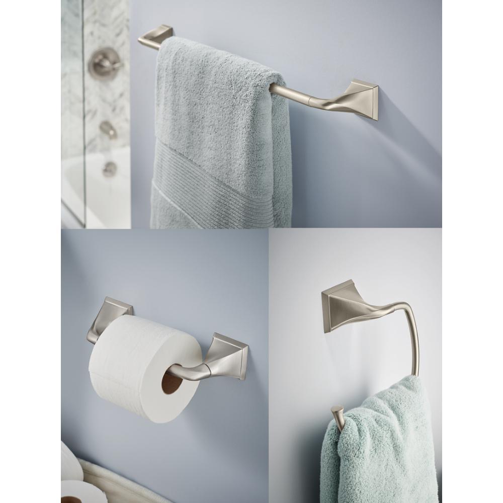 • 3-piece set includes: 24 in. towel bar, pivoting toilet paper holder and towel ring