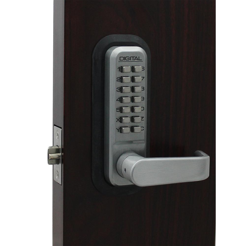 LockeyUSA 2835 Marine Grade Digital Door Lock is a 100% mechanical door lock with a programmable passcode that gives you ultimate control and peace-of-mind security. From the tumbler pins, internal plate screws, push buttons, and craftsmanship of the front and back lock housing, this lock is all about safety and performance. This auto-locking mechanical door lock can be used for residential doors, office entry, interior doors, gates, and any vulnerable points throughout your property where you want to restrict access. The ADA-compliant levers are full-size with a weather-resistant finish for lasting wear. The 2835 Digital Door Lock offers a built-in passage feature for occasions where you want to enter and exit freely without entering a punch code. On the keypad housing of the lock you can quickly change the function from normal to passage mode for convenient access. In passage mode, the door will latch shut, but not lock. This comes in handy for office spaces and small businesses where you want to give clients or customers easy access during the day.