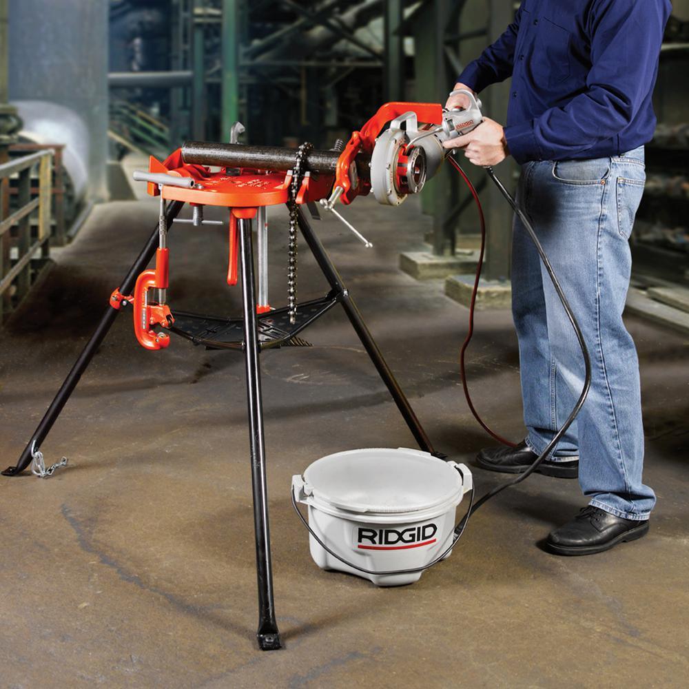 Built for all your rugged jobsite needs, the RIDGID 460-6 Portable TRISTAND Chain Vise easily and securely clamps work pieces. With its unique design, the pipe vise has an optimized base layout to maximize the working area, giving you more space for working around the pipe. The pipe vise stand features a convenient lug to clamp the weld ground for a great connection when welding pipe. Designed for easy portability and set-up, it features integral folding legs and tray, along with handy tool hangers. The large TRISTAND vise base overhangs the front legs for a clear tool swing. Offering strength and stability, the Model 460-6 pipe vise has a rugged leg chain and durable tool tray made for tough and demanding jobs. The TRISTAND is a portable chain vise tripod has a 1/8 in. to 6 in. pipe capacity making a great universal pipe threading stand.
