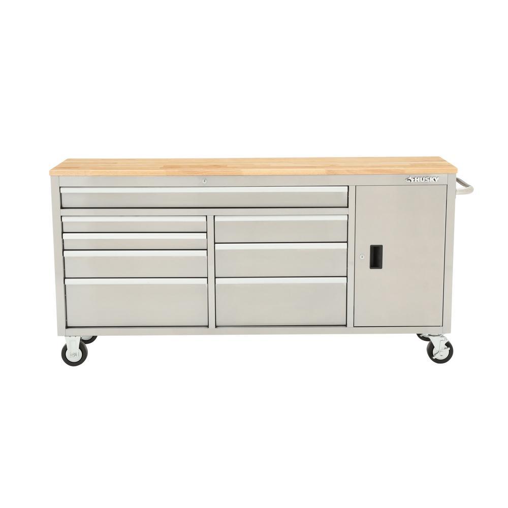 72 in. 8-Drawer and 1-Door Mobile Workbench in Stainless Steel