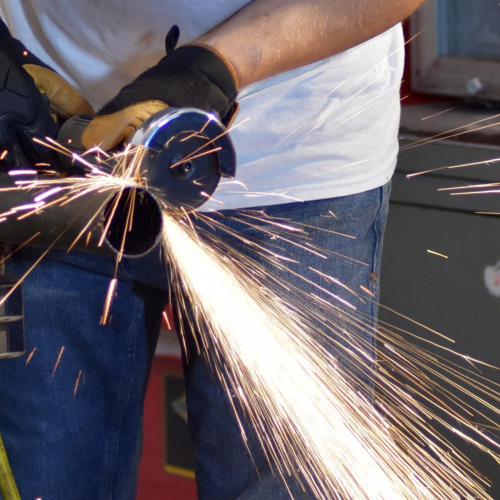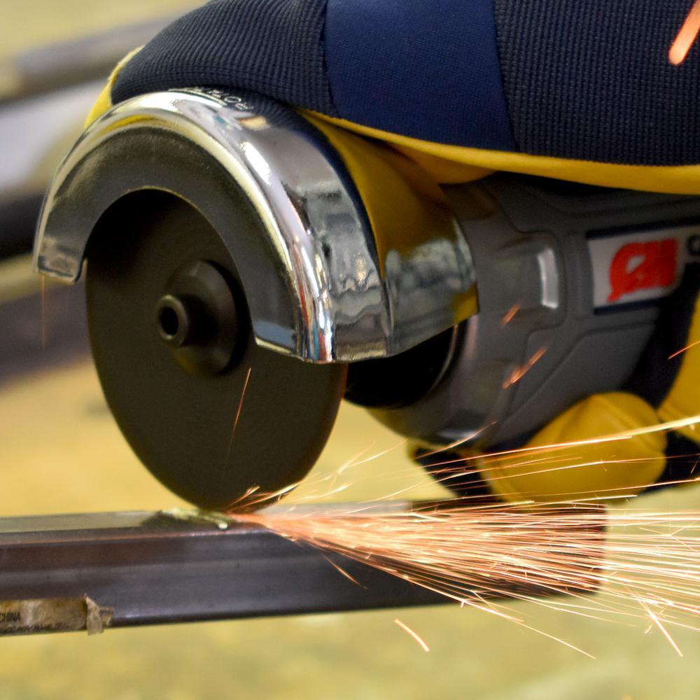 Air cut-off tool (XT200000) features a HP motor that powers the three cutting discs through nearly anything, including plastic, fiberglass, composite materials, sheet metal, angle iron, metal tubing and more