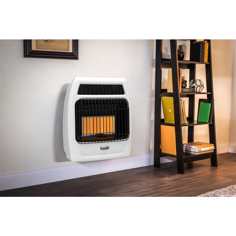 Dyna-Glo wall heaters are the ideal choice for safe indoor supplemental heating. This state-of-the-art vent free technology does not require a flue or chimney. These heaters are great for use in your home, cabin or garage. Since these heaters do not require electricity to operate, they make an excellent choice for everyday heating, and emergency situations when the power goes out. Using infrared heating technology, objects are warmed first similar to how the sun heats and feels. This Infrared Wall Heater burns with 99.9% efficiency, and operates on Natural Gas only. Not for sale in California or Canada. Check your local regulations on installation restrictions and requirements. DEPENDABLE - Ideal for emergency or daily supplemental use ECONOMICAL - Cut heating bills by warming only occupied areas COMFORT Heater automatically adjusts to your desired temperature, just like your home thermostat SAFE - Built-in oxygen depletion sensor (ODS) immediately shuts down the heater if carbon monoxide or lack of oxygen is detected CONVENIENT 1-continuous press of the battery assisted igniter makes ignition quick and effortless VERSATILE - Includes all necessary hardware and bracket for wall mounting UPGRADEABLE - Separately sold optional base legs (WBL100) provide the alternative of floor mounting. Separately sold optional Wall Heater Fan (WHF100) distributes heat in a quiet, yet powerful way.
