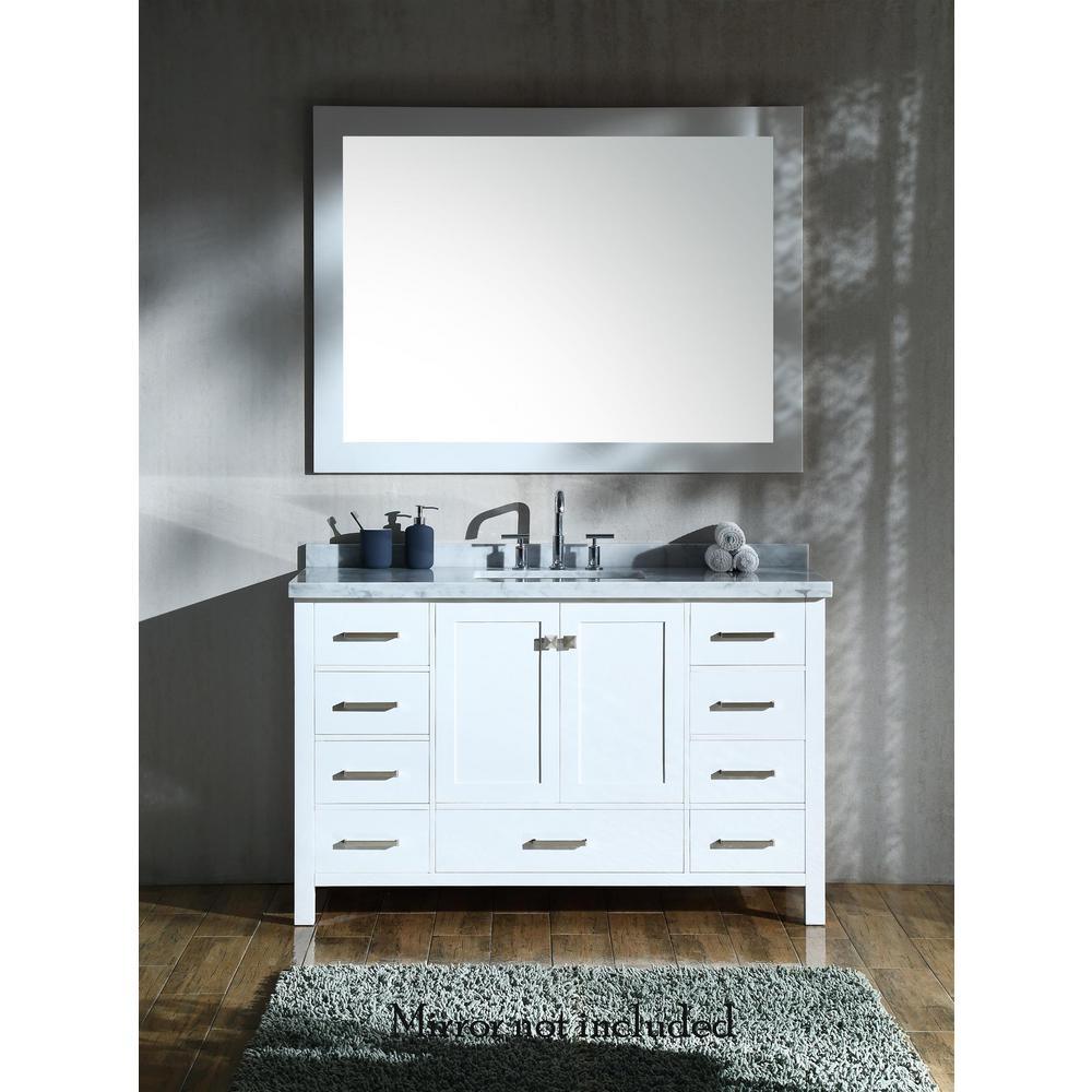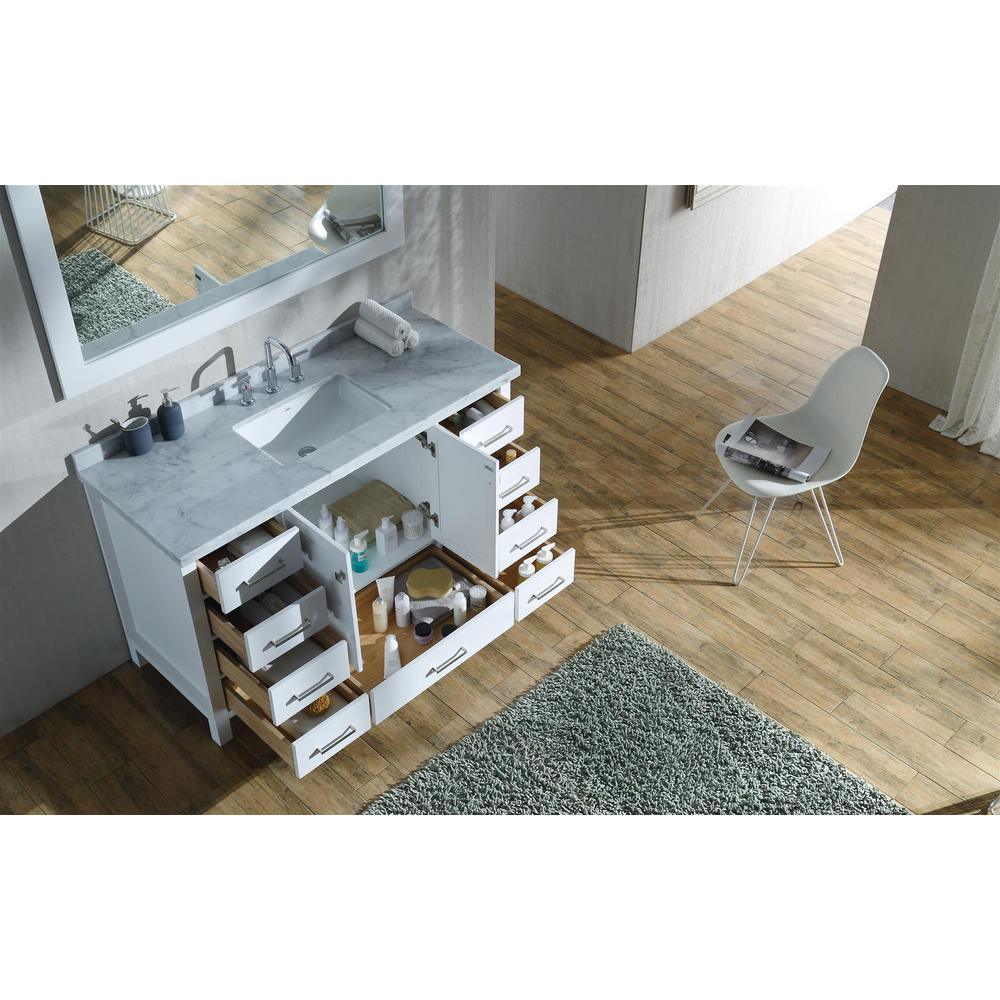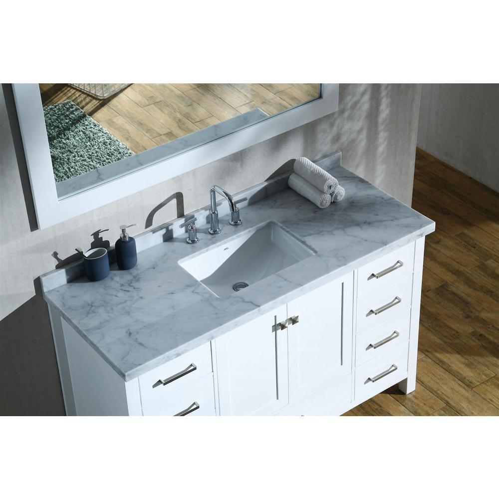 Cambridge 55 in. Bath Vanity in White with Marble Vanity Top in Carrara White with White Basin