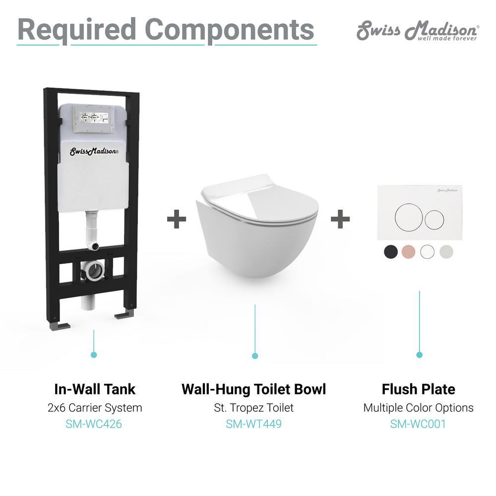 The St. Tropez Wall hung toilet bowl saves precious space for residential and commercial bathrooms. The Carrier Tank is completely concealed, still offering simple access to the plumbing system through the actuator plate. The sleekest and seamless design, that is incredibly easy to clean.