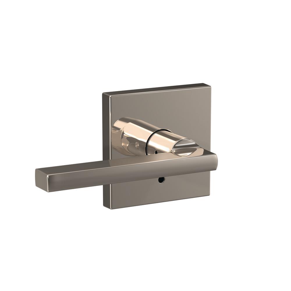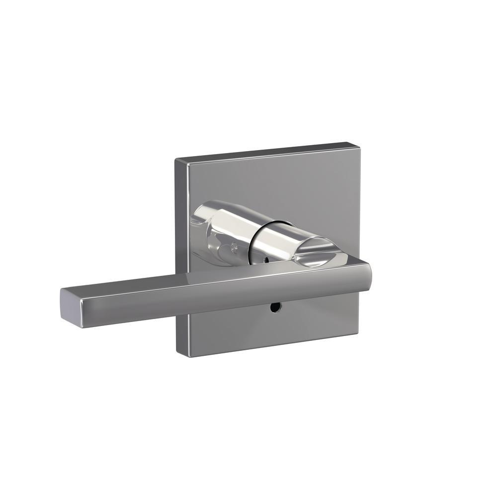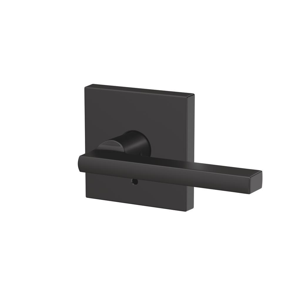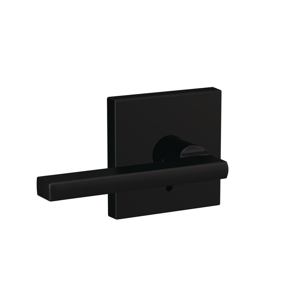 The Schlage Custom Latitude Lever with Collins Trim Passage and Privacy Lock in Matte Black is uniquely designed to work on both Hall/Closet and Bed/Bath doors. It’s easy to switch between locking and non-locking functions. Just insert or remove the locking pin from the pinhole on the interior side of the hardware. Schlage Custom hardware is also designed with premium style in mind, featuring low profile trim and concealed screws for a more polished look. The Latitude lever offers a crisp perspective on minimalist design with its clean lines and rectangular features, while the Collins trim’s strong lines and square shape embody refined elegance. The striking appearance of the Matte Black finish creates an elegant look that’s sure to be noticed in any style setting.