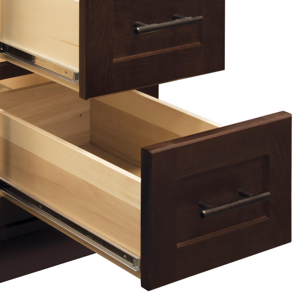 • Hardwood drawers slide easily on full-access ball-bearing glides