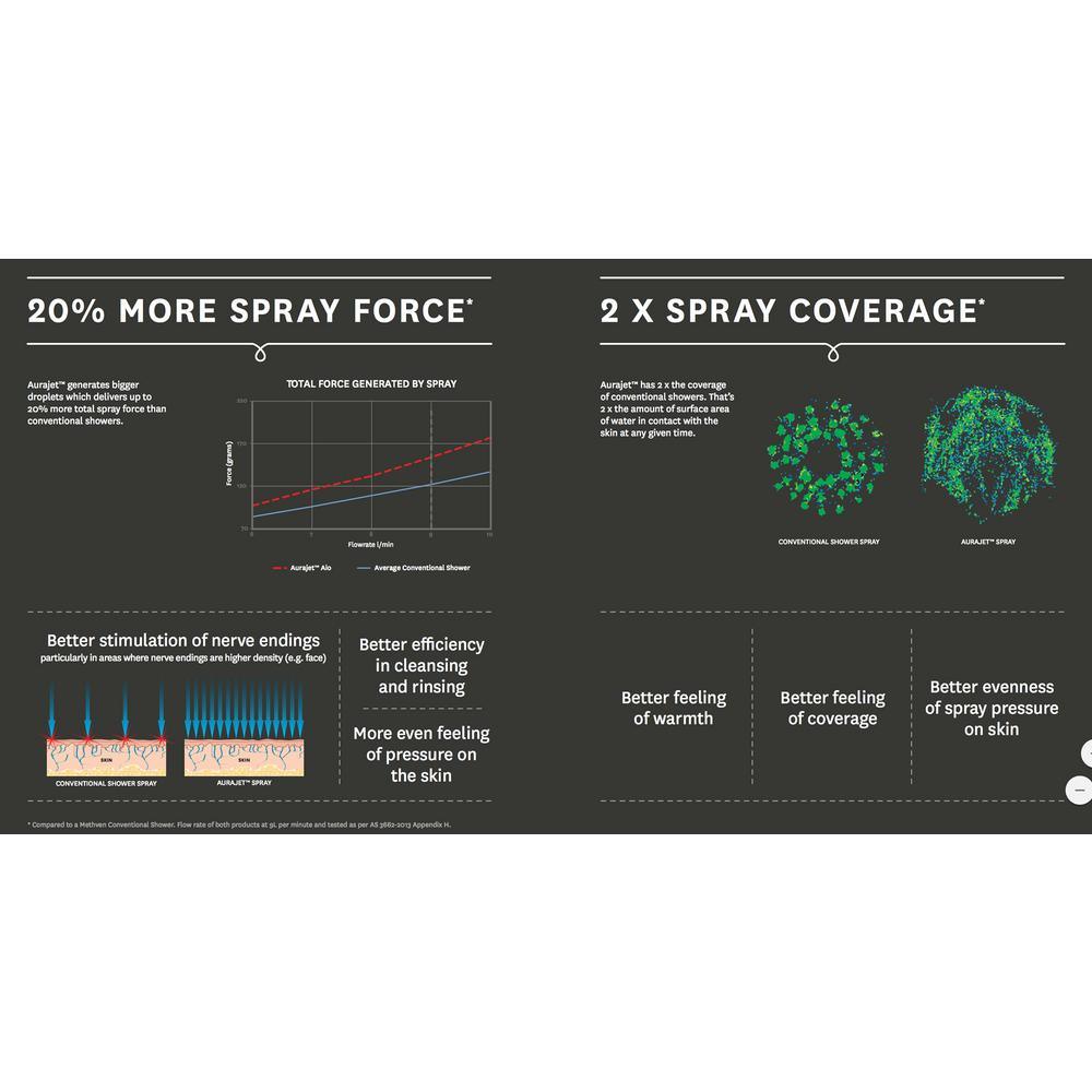 - Generates up to 25% more spray force than other traditional needle spray showers