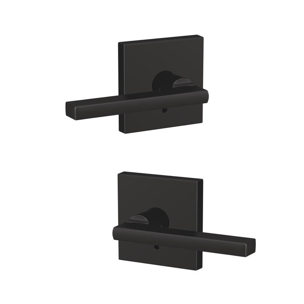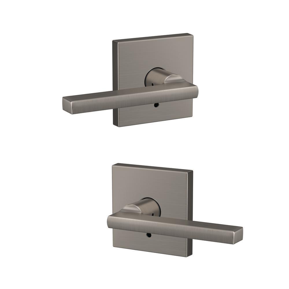 The Schlage Custom Latitude Satin Nickel Dummy Door Lever with Collins Trim is uniquely designed with premium style in mind, featuring low profile trim and concealed screws for a more polished look. Schlage Custom dummy hardware comes in pairs, making it perfect for French doors. The Latitude lever offers a crisp perspective on minimalist design with its clean lines and rectangular features, while the Collins trims strong lines and square shape embody refined elegance especially when wrapped in our versatile Satin Nickel finish.