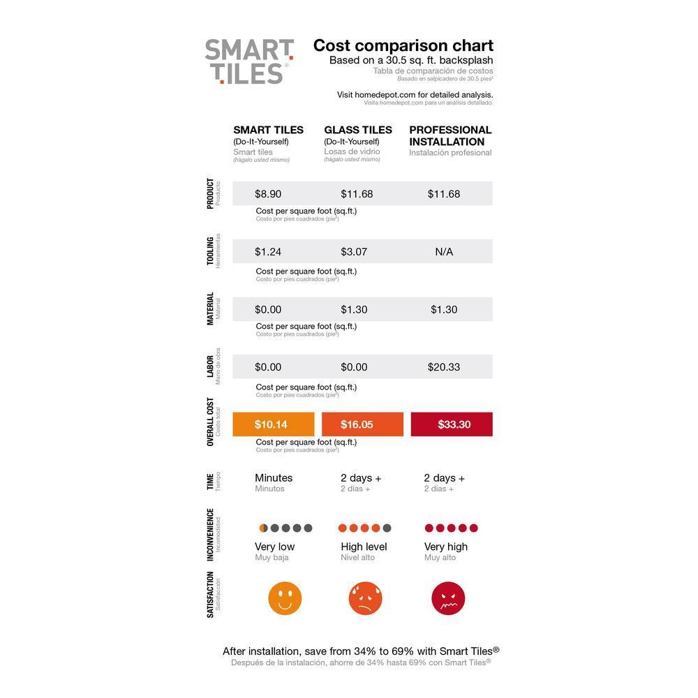 Smart Tiles is the Original, made in North America, do-it-yourself peel and stick backsplash tiles. Especially designed for backsplash in kitchen and bathroom environments, the tiles are resistant to the heat of stovetops and the humidity of bathrooms (do not use in shower). Made of an adhesive substrate topped with a gel component called Gel-O, the peel and stick Smart Tiles have a 3-dimensional effect. We guarantee our tiles to stick without adding extra glue and our patented clear Gel-O component will never yellow or crack with time. The product is lightweight, easy to handle, cut and maintain and Smart Tiles will remain on your walls for as long as you wish them to be. The peel and stick tiles can be installed in minutes over a clean and sleek surface without any mess or specialized tools. We have what it takes for your backsplash ideas.